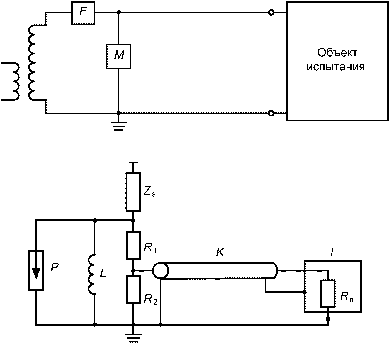 9.10.6 В качестве источника дуги через главную изоляцию внутри испытуемого объекта можно использовать медный провод диаметром от 1 до 1,5 мм, размещаемый между частями высокого и низкого напряжений, или аналогичное ему приспособление.