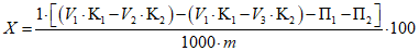Массовую долю редуцирующих веществ в мелассе X, %, вычисляют по формуле