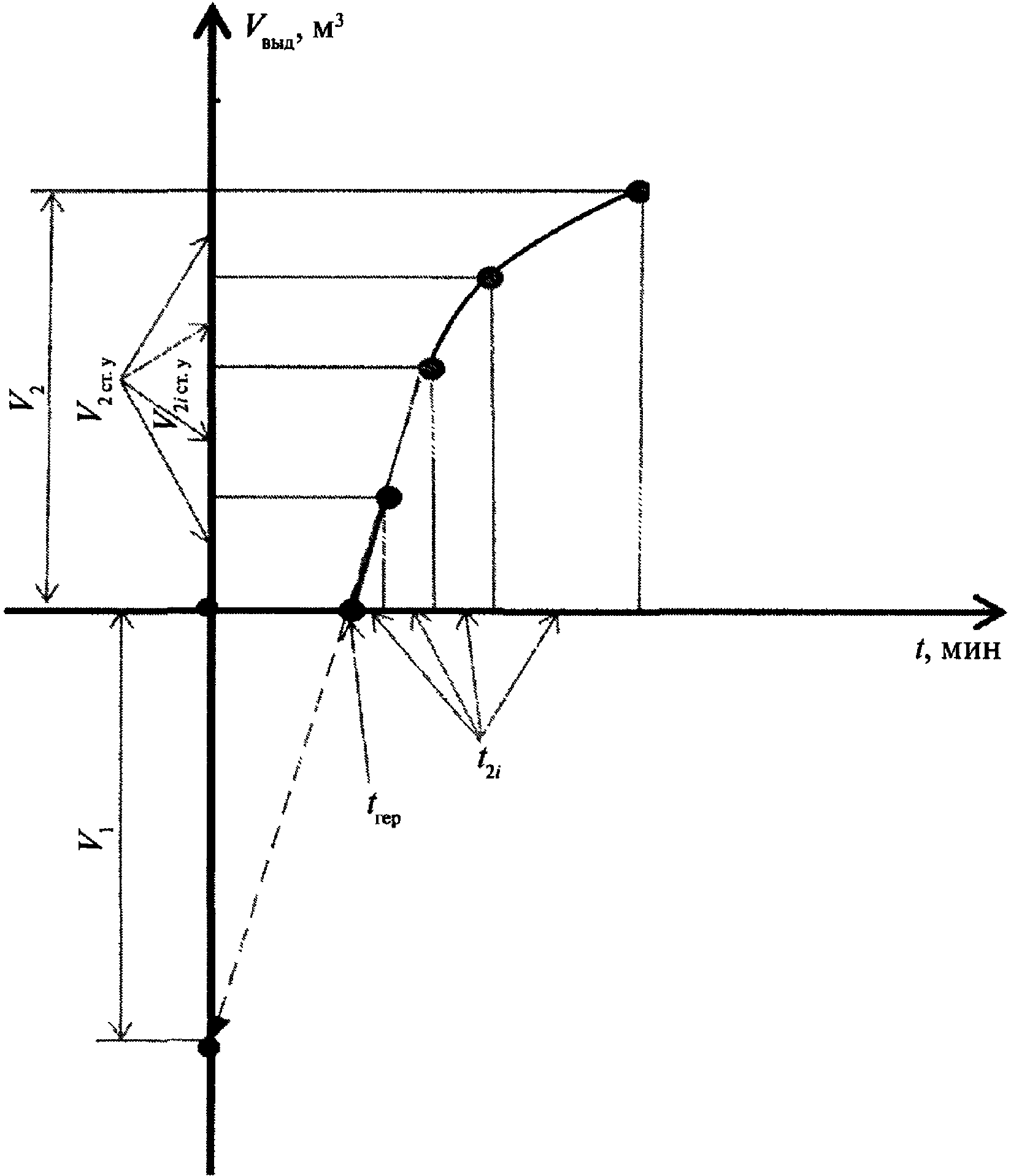 Значение графика десорбции в точке его пересечения с осью ординат считают равным объему газа, выделившемуся из угольной пробы при ее отборе.