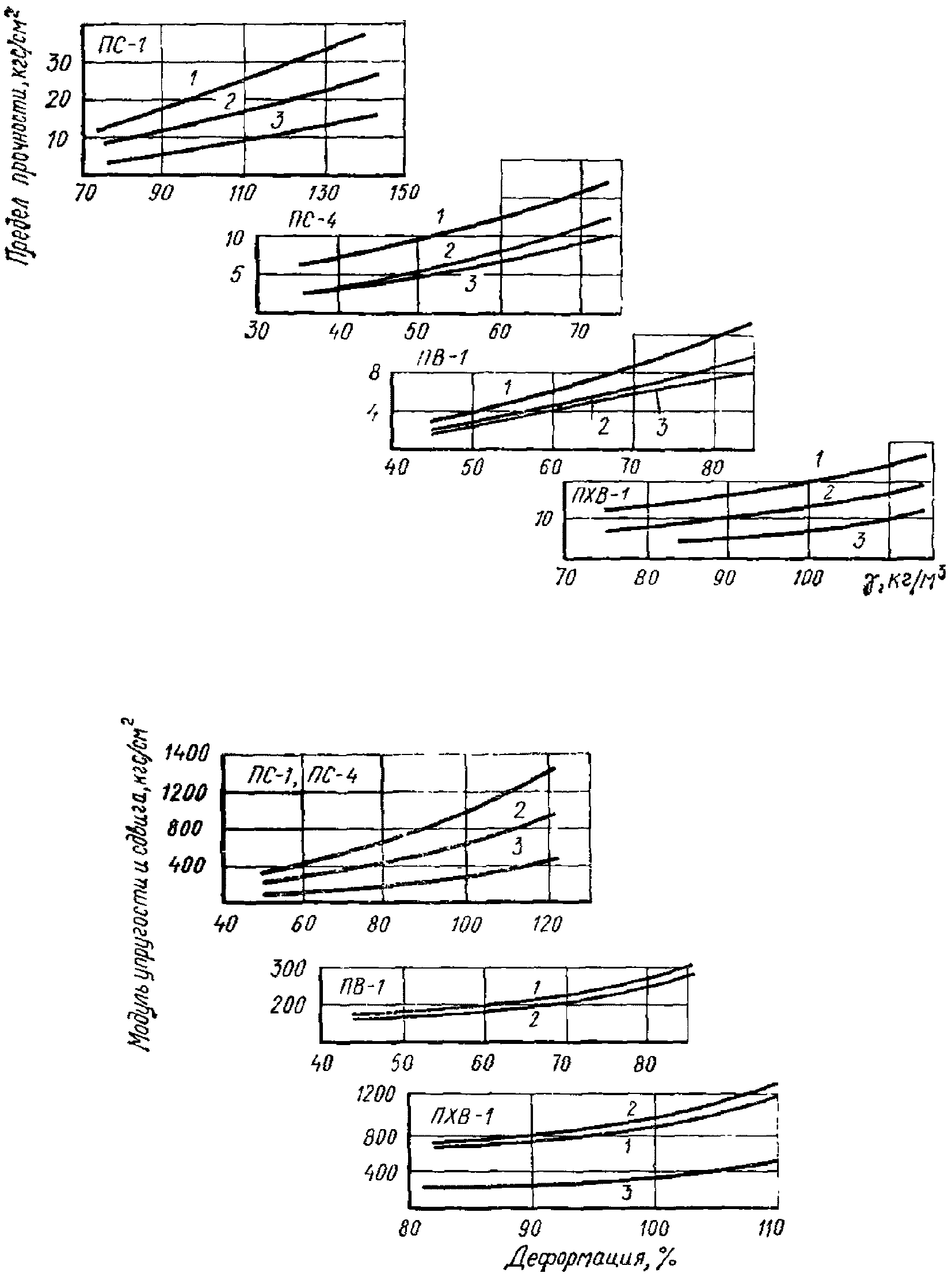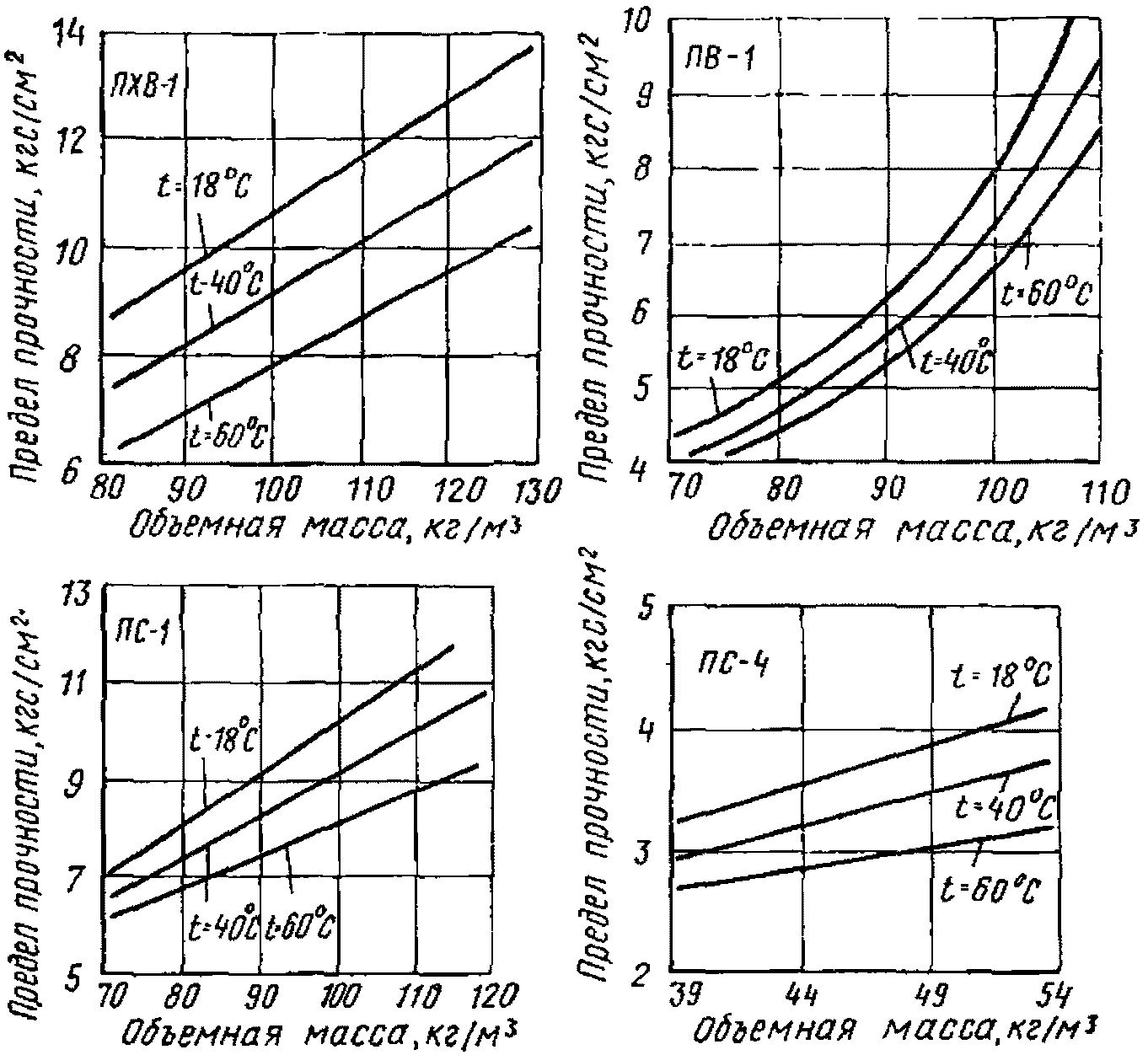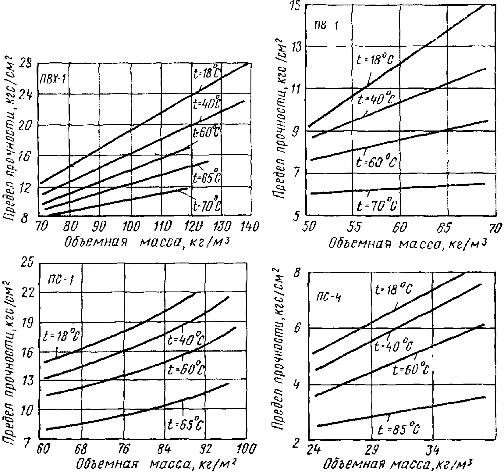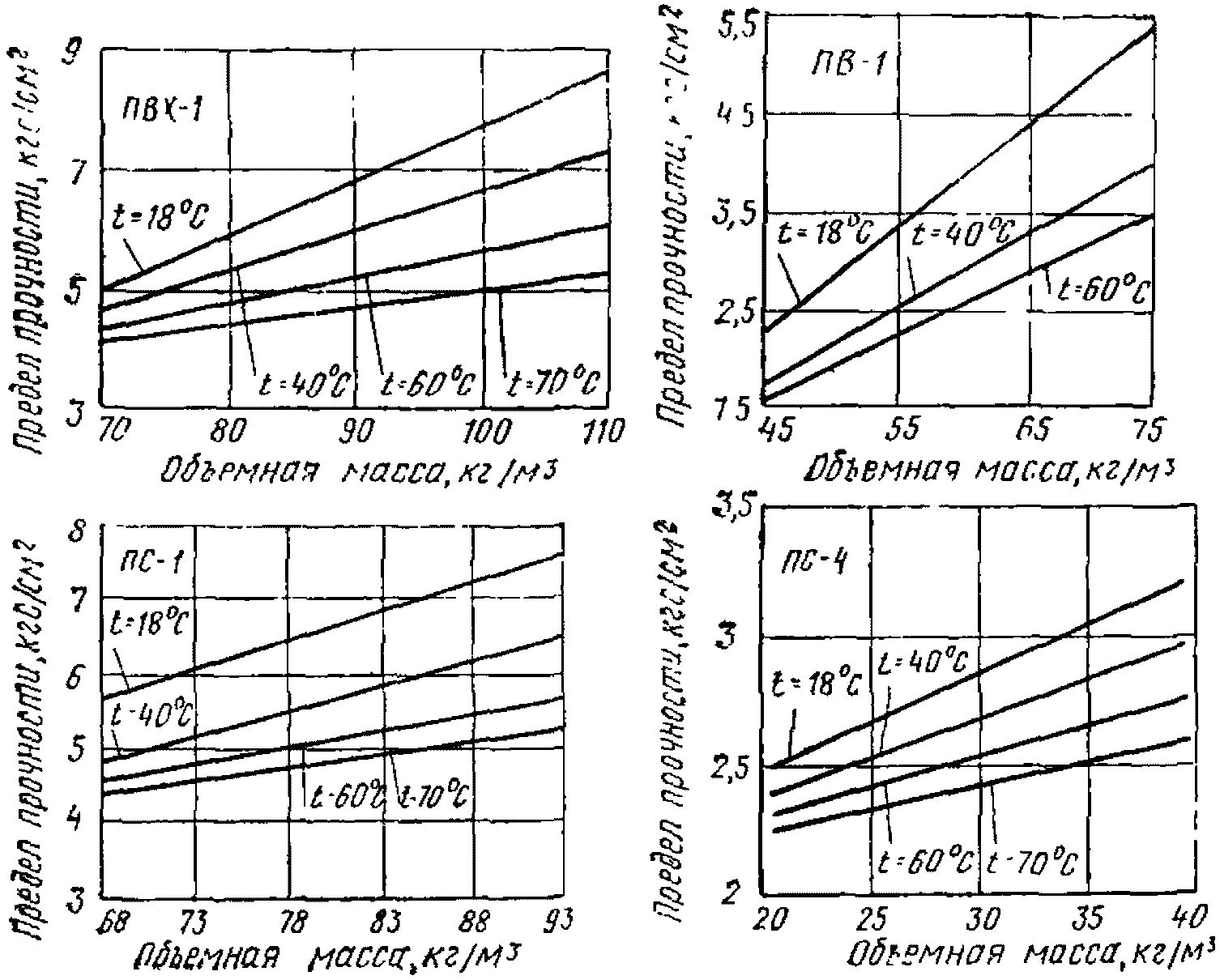 1.15. Большинство приведенных в Пособии физико-механических характеристик пенопластов и сотопластов получены при испытании образцов при нормальной (20 °C), повышенной (до 80 °C) и пониженной (до -60 °C) температурах.