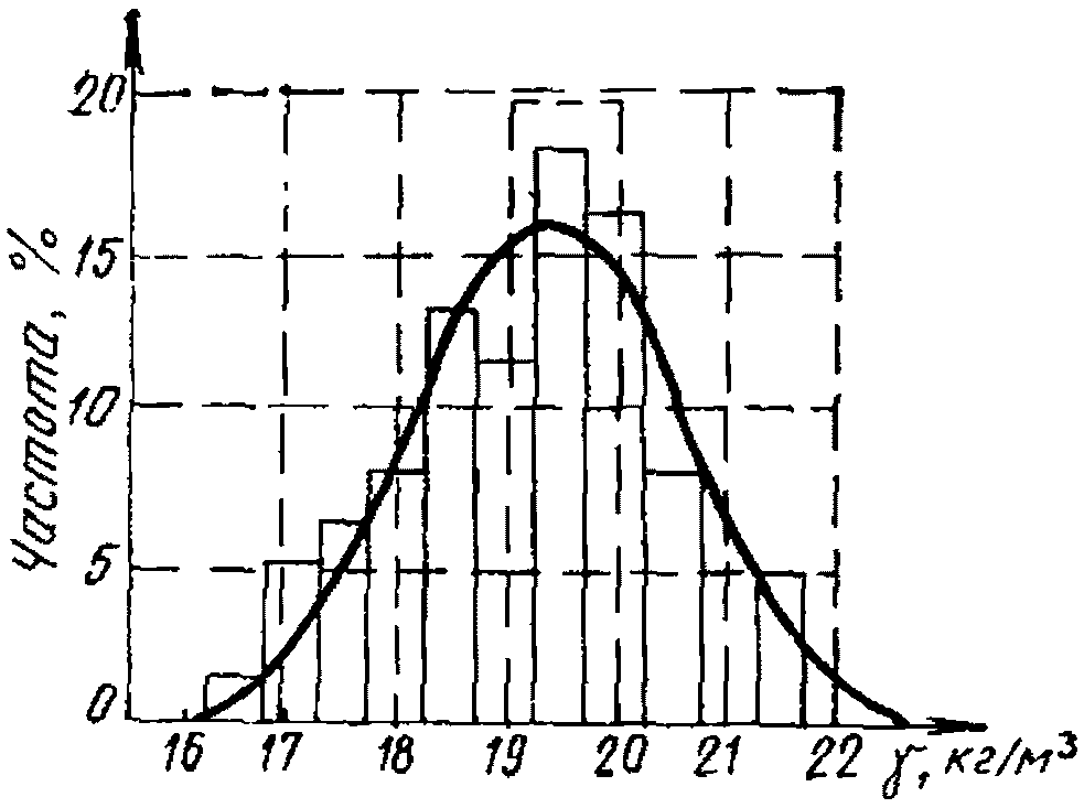Для беспрессовых полистирольных пенопластов характерно сочетание надъячеистой и ячеистой структур. Надъячеистая структура представляет собой совокупность гранульных образований. Плотность распределения этих образований в пенопласте достаточно похожа на нормальное (рис. 1). Каждое гранульное образование является пористым телом, содержащим ячейки. Совокупность ячеек представляет собой ячеистую структуру. В структуре пенопластов между гранульными образованиями имеются разного рода структурные дефекты.