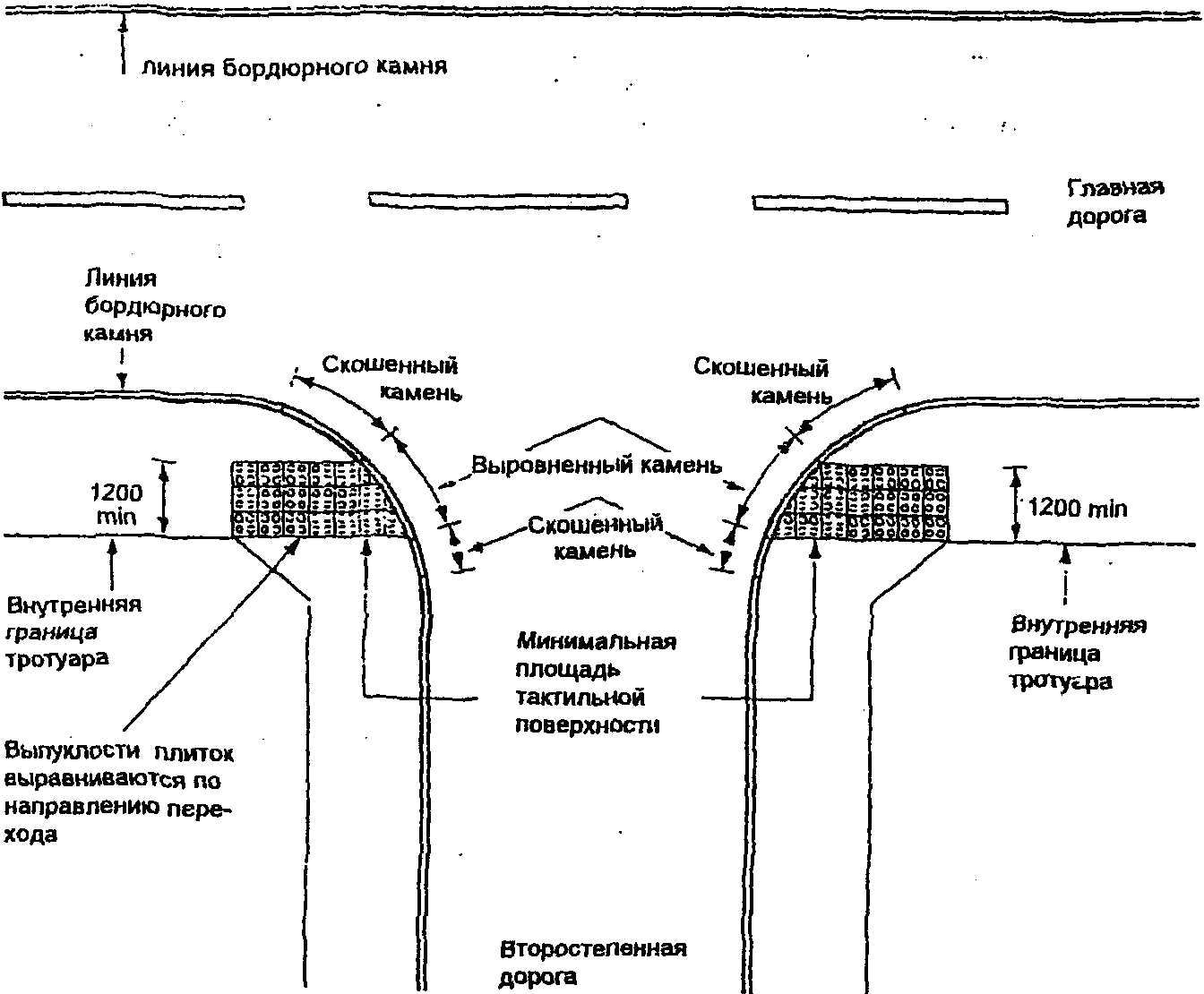 2.3.2. ВЫРАВНИВАНИЕ ТАКТИЛЬНЫХ ПЛИТ В НАПРАВЛЕНИИ ПЕРЕХОДА