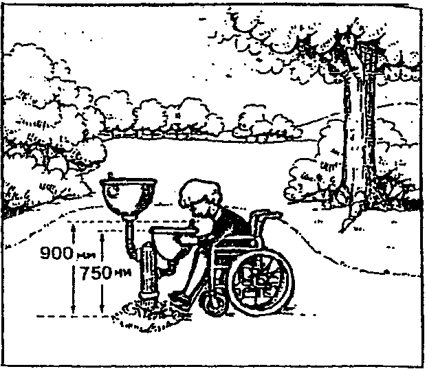 - иметь открытый желоб по фронту чаши на уровне 750 - 900 мм над землей. Желоб должен обеспечить сток воды от струи высотой не менее 100 мм, позволяя подставить под струю чашку или стакан.