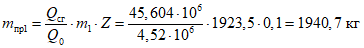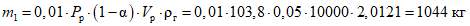 m (кг), вышедшего в результате расчетной аварии в помещение.