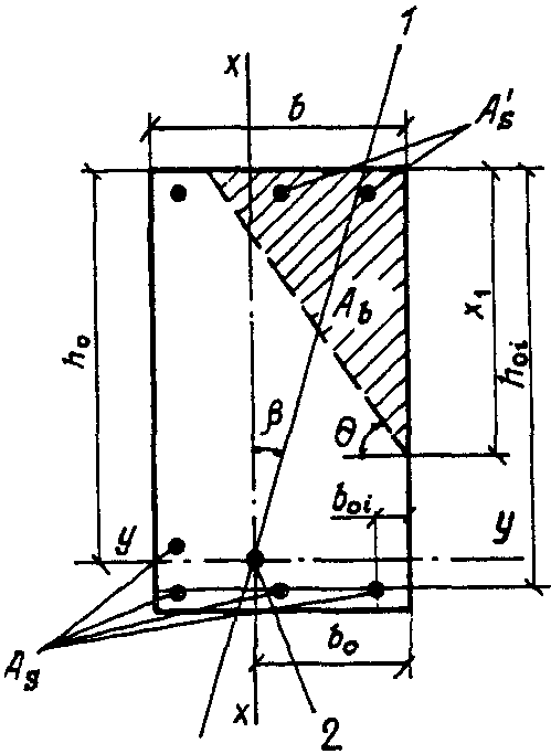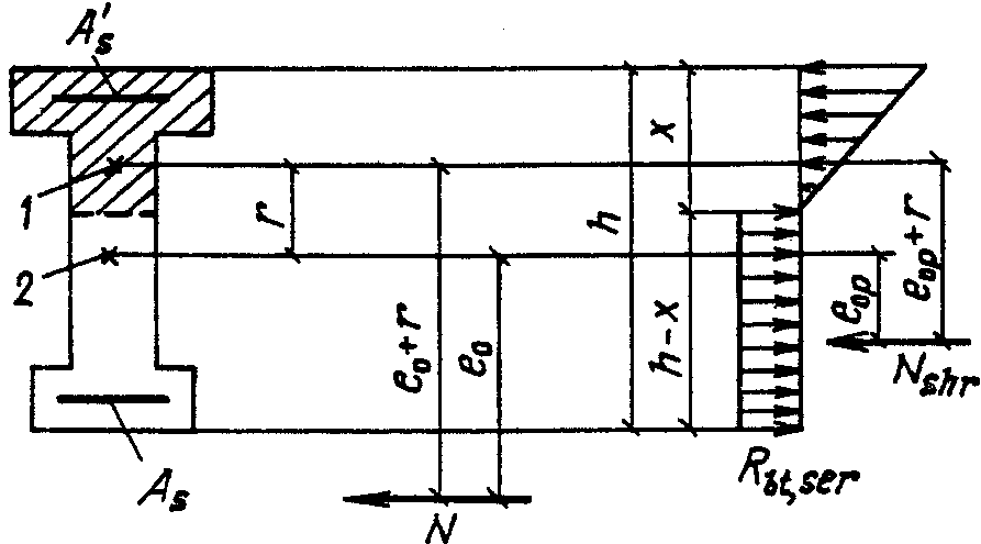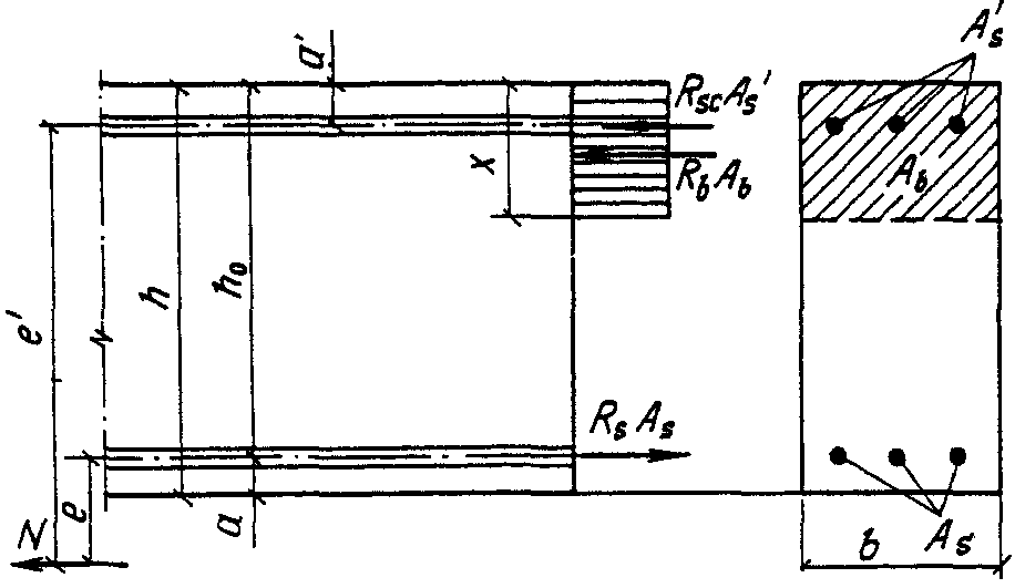 a, a' - расстояния от равнодействующей усилий в арматуре соответственно S и S' до ближайшей грани сечения;
