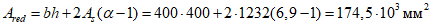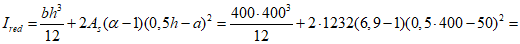 - площадь приведенного сечения элемента, включающая площадь бетона, а также площадь всей продольной арматуры, умноженная на отношение модулей упругости арматуры и бетона;