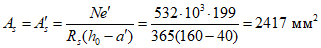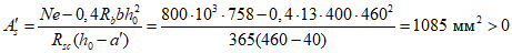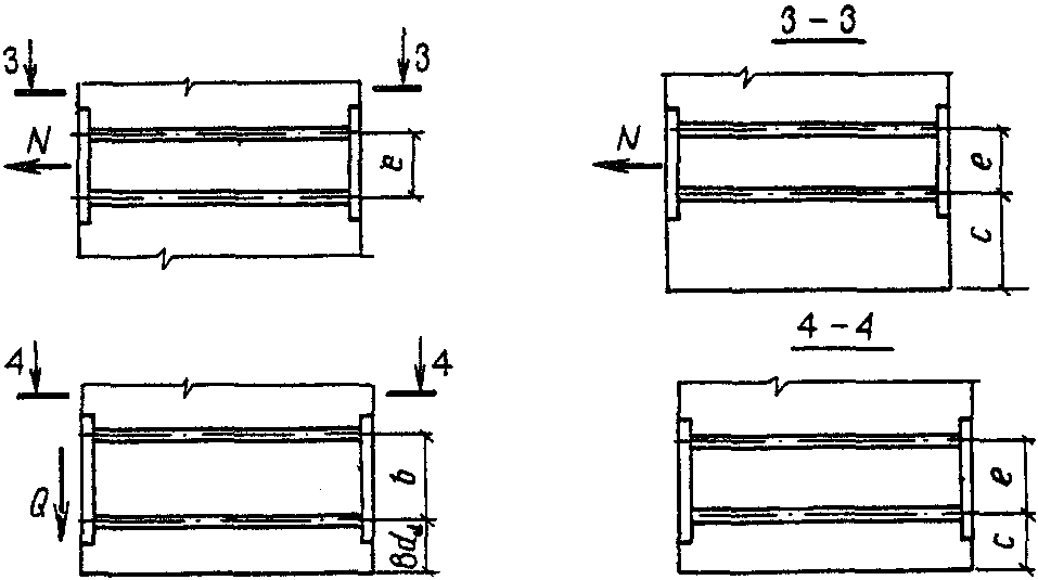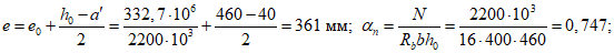 e, e' - расстояния от точки приложения продольной силы N до равнодействующей усилий в арматуре соответственно S и S';