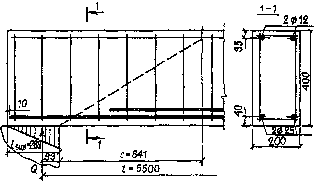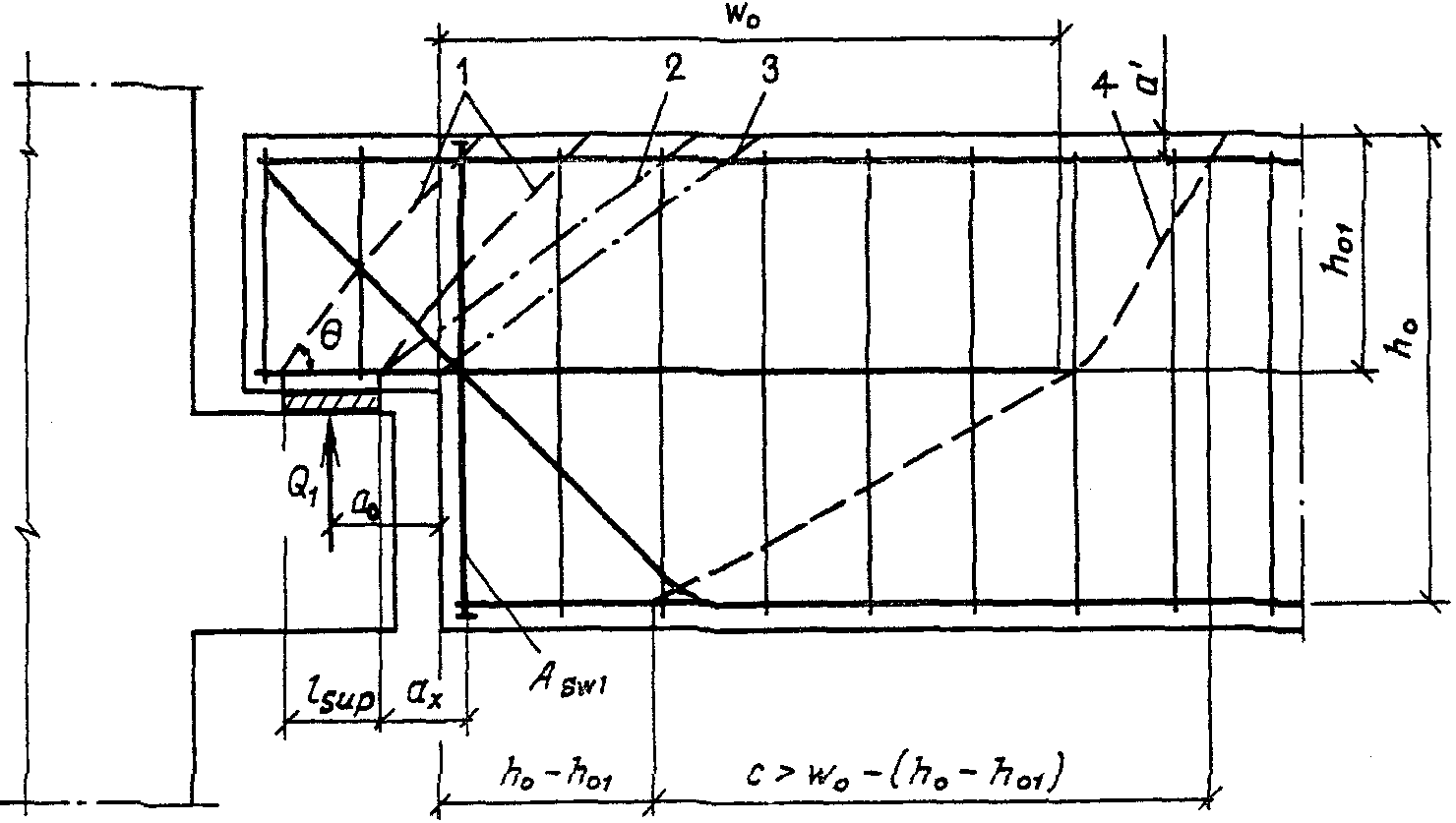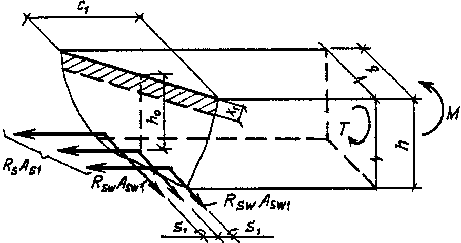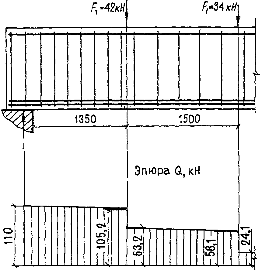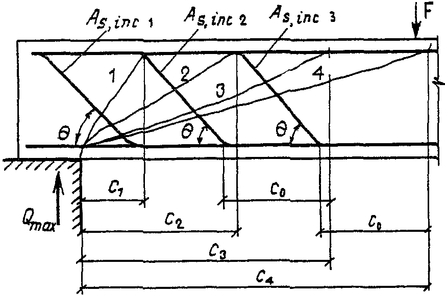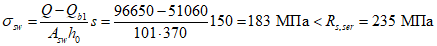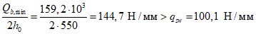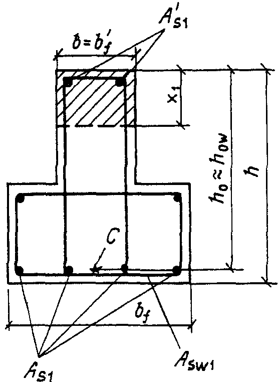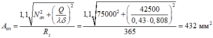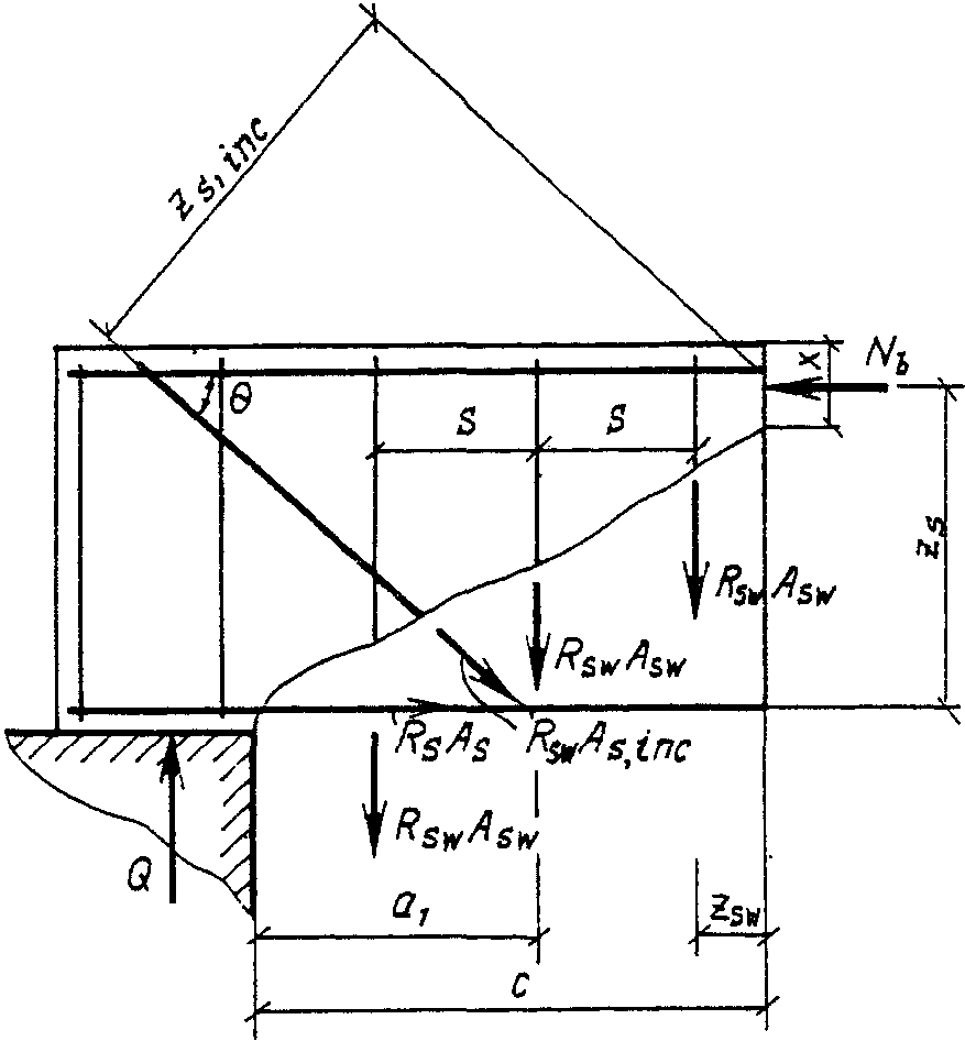 - площадь сечения хомутов, расположенных в одной нормальной к продольной оси элемента плоскости, пересекающей наклонное сечение;