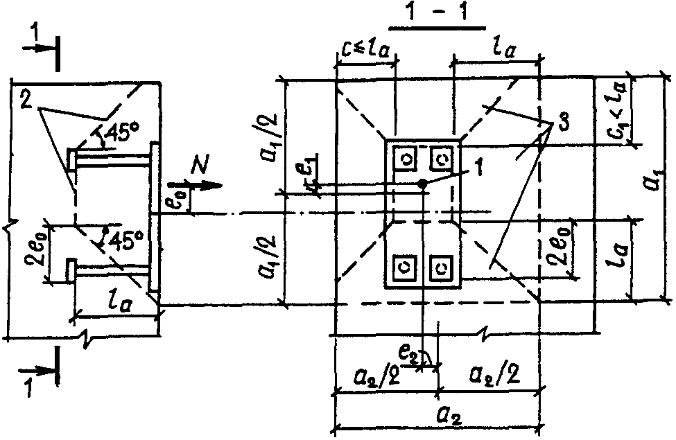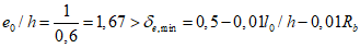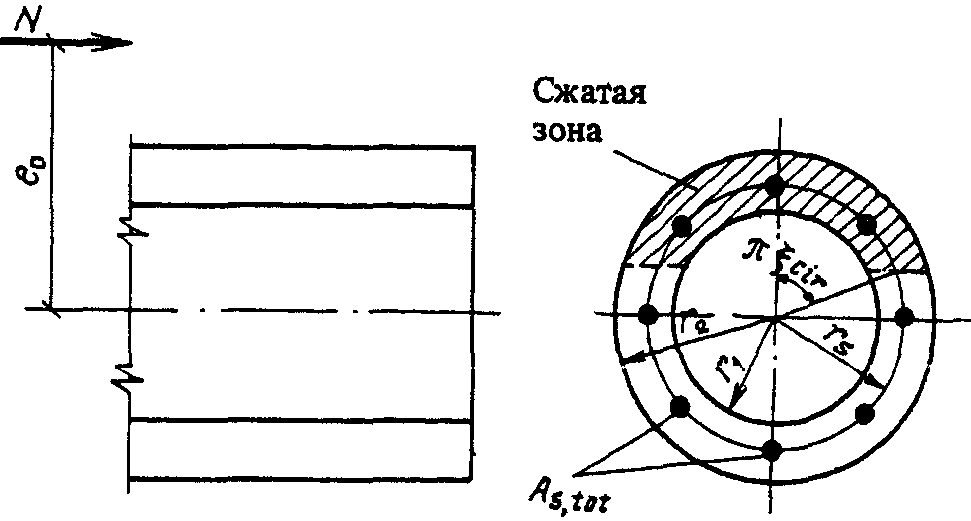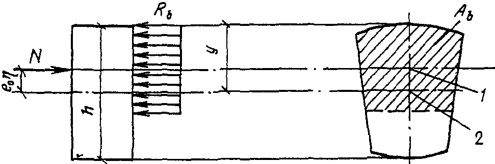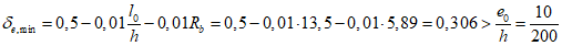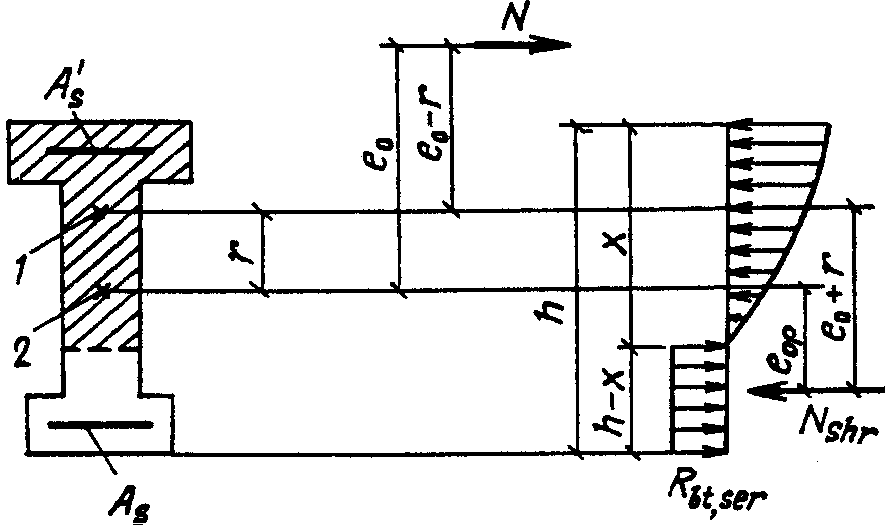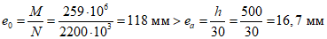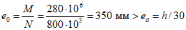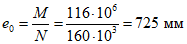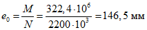 - эксцентриситет продольной силы N относительно центра тяжести приведенного сечения, определяемый согласно