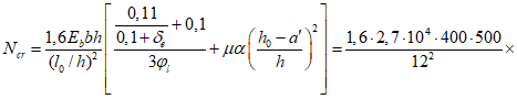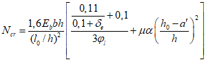 - расчетная длина элемента, подвергающегося действию сжимающей продольной силы; значение