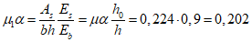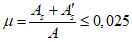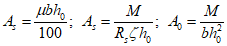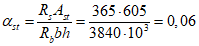 - коэффициент армирования, определяемый как отношение площади сечения арматуры S к площади поперечного сечения элемента