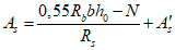 - расстояние от точки приложения продольной силы N до центра тяжести площади сечения арматуры S;