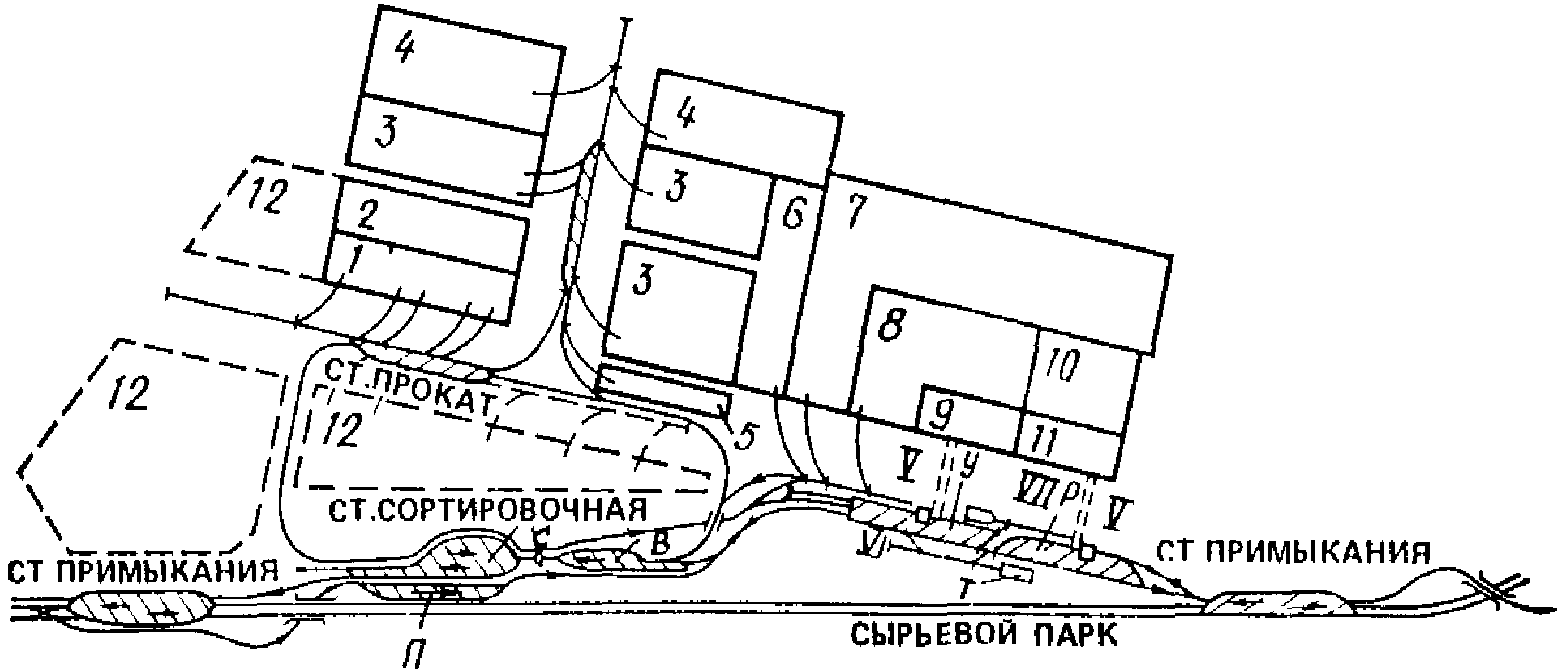 Промышленные станции следует проектировать с учетом комплексного использования путевого развития станций, расположенных на внешних и внутренних железнодорожных путях предприятий, а также станций примыкания железных дорог общего пользования.