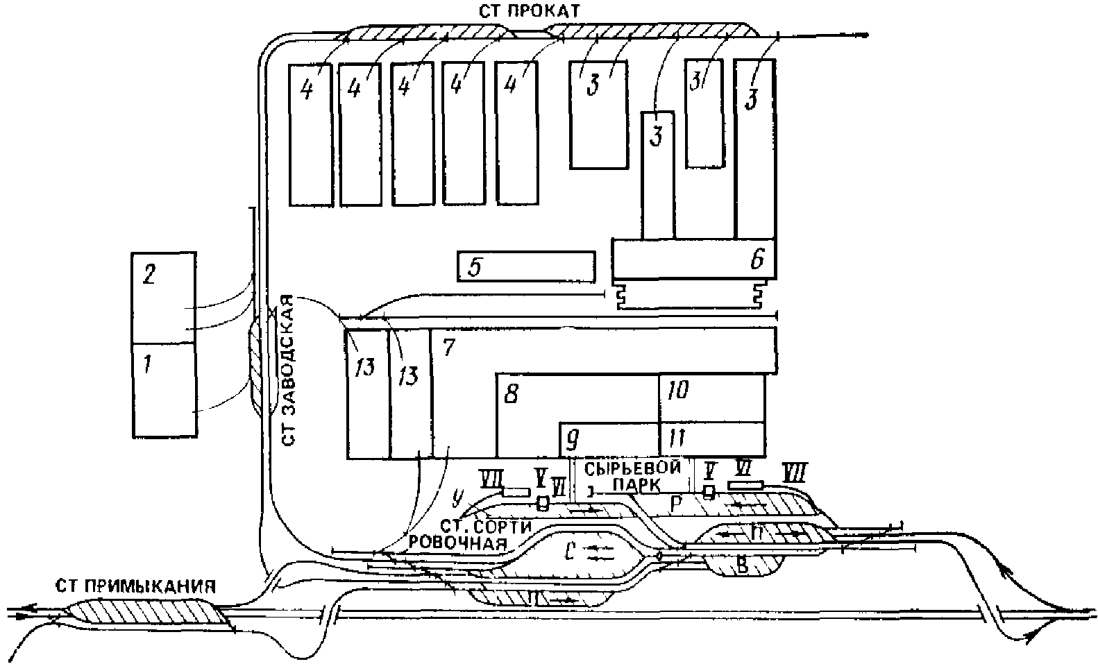 1.6. Принципиальное размещение промышленных станций, их путевое развитие, тип сортировочного устройства устанавливают при решении общей схемы железнодорожного транспорта при разработке схем генеральных планов промышленных узлов, генеральных схем железнодорожного транспорта промышленных районов или в технико-экономических обоснованиях проектирования и строительства сооружений промышленного железнодорожного транспорта, исходя из условий рационального распределения работы между станциями общей сети железных дорог и промышленными станциями с концентрацией сортировочной работы на наименьшем числе станций.