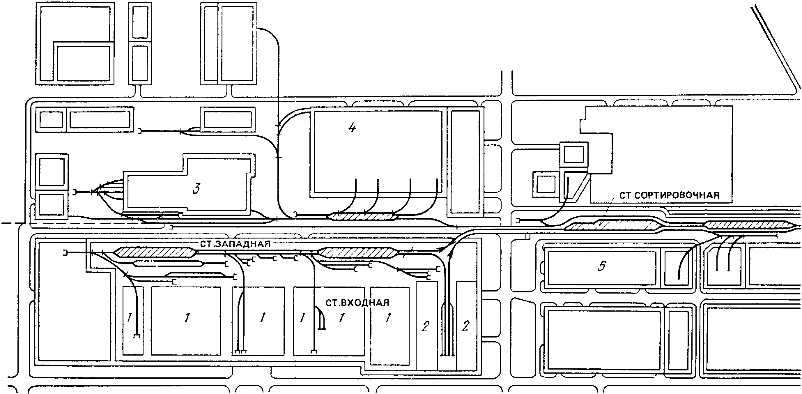 1.5. При проектировании следует стремиться к сокращению числа станций, совмещая на общих станциях сортировочную и грузовую работу по распределению вагонопотоков между станциями и маневровые операции по обслуживанию пунктов или фронтов погрузки-выгрузки.