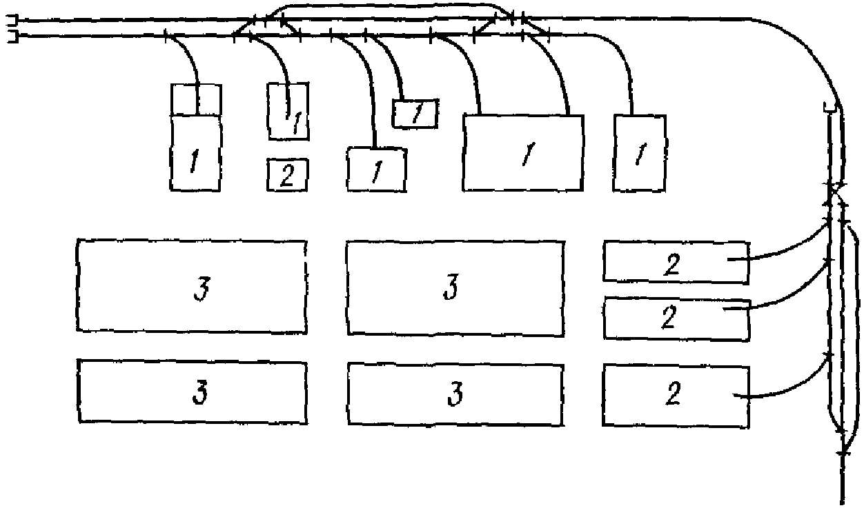 Примечания. 1. К внутренним железнодорожным путям относятся пути, расположенные на территории заводов, фабрик, шахт, портов, лесных и торфяных разработок, электростанций, складских баз, карьеров и других предприятий; пути промышленных станций и постов, станций промышленных узлов, а также пути, соединяющие между собой эти станции и посты, погрузочно-выгрузочные фронты, предприятия или отдельные производства, расположенные на обособленных площадках. Внутренние пути подразделяются на соединительные, станционные и погрузочно-выгрузочные.