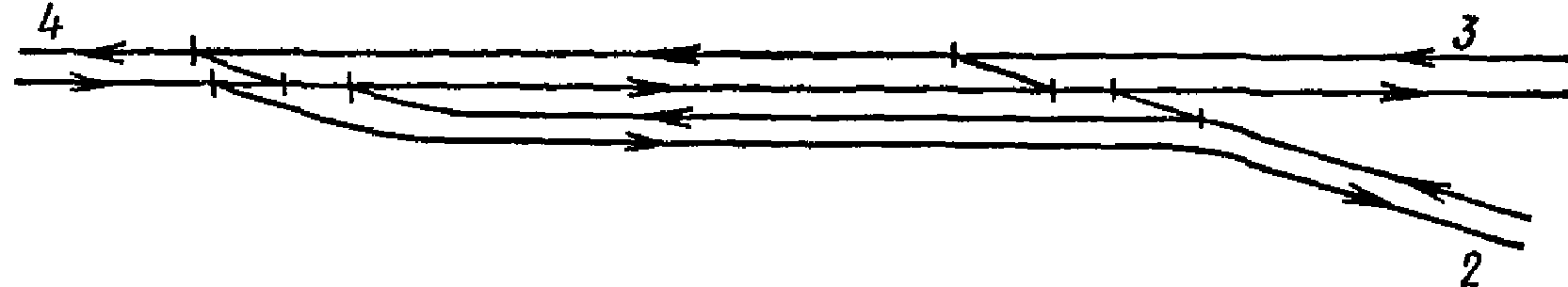 3. Приемо-отправочные пути при наличии главных путей нумеруют арабскими цифрами, начиная со следующего номера за номером главного пути; при этом пути, предназначенные для приема четных поездов, нумеруют четными цифрами (4, 6, 8, 10 и т.д.), а пути, предназначенные для приема нечетных поездов - нечетными цифрами (3, 5, 7, 9 и т.д.).