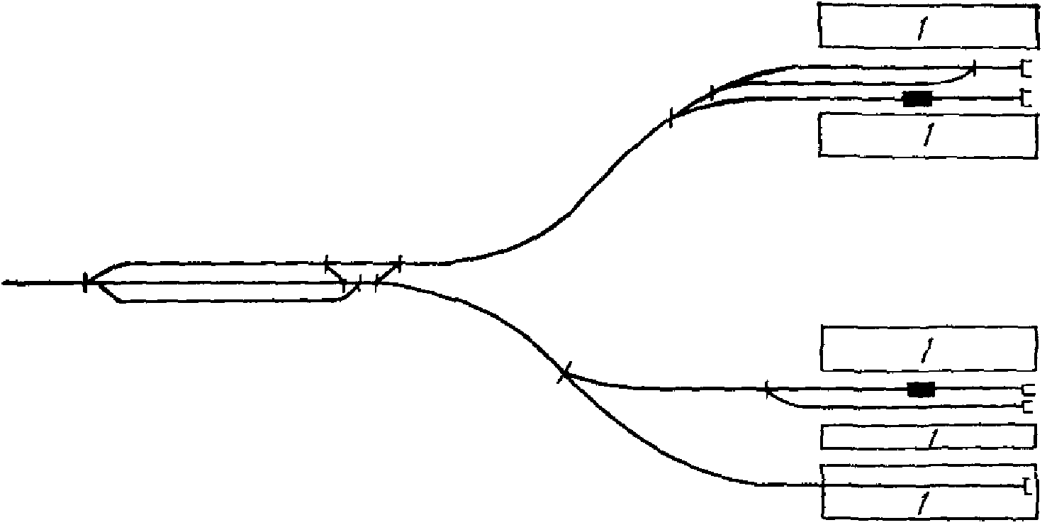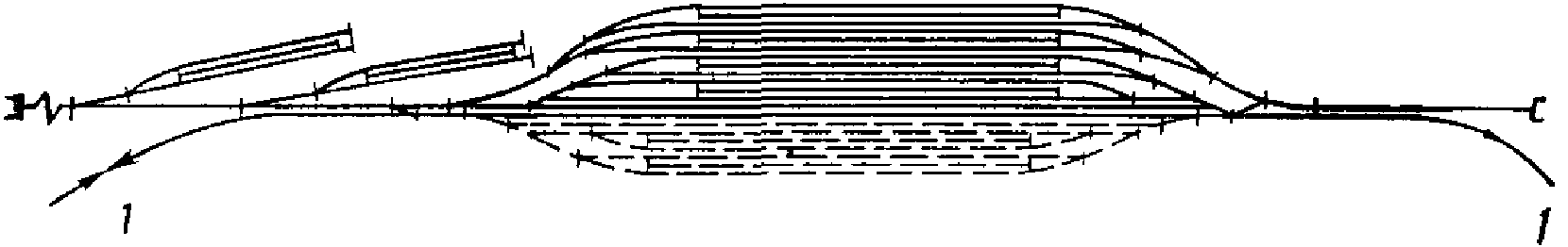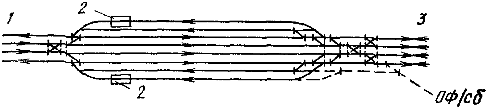 Если отправление поездов с путей сортировочного парка предусматривается с перестановкой в приемо-отправочный парк, то в голове сортировочного парка укладываются симметричные стрелочные переводы марки 1/6, предназначенные для горочных путей, а в месте примыкания обходного пути к горочной горловине должны укладываться симметричные стрелочные переводы марки 1/6, предназначенные для приемо-отправочных путей (см.