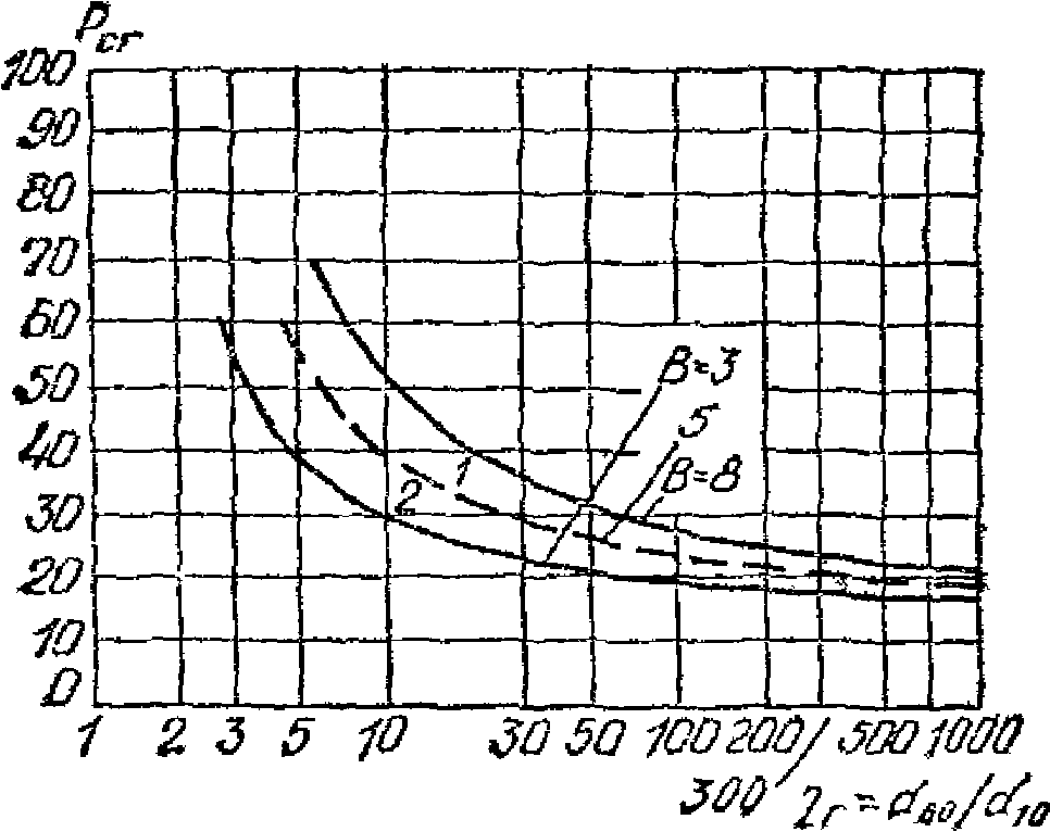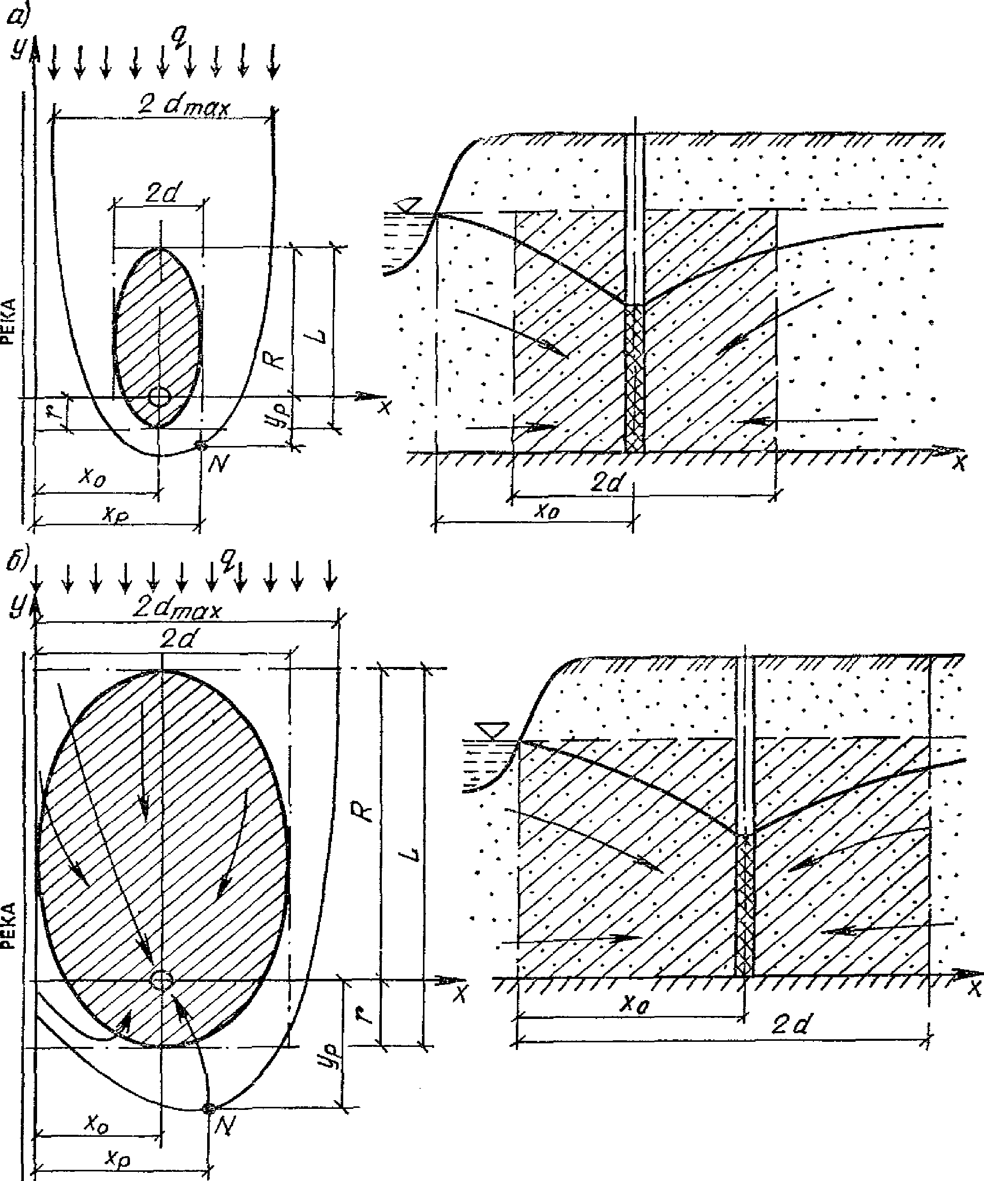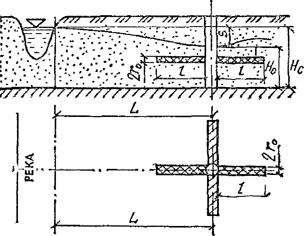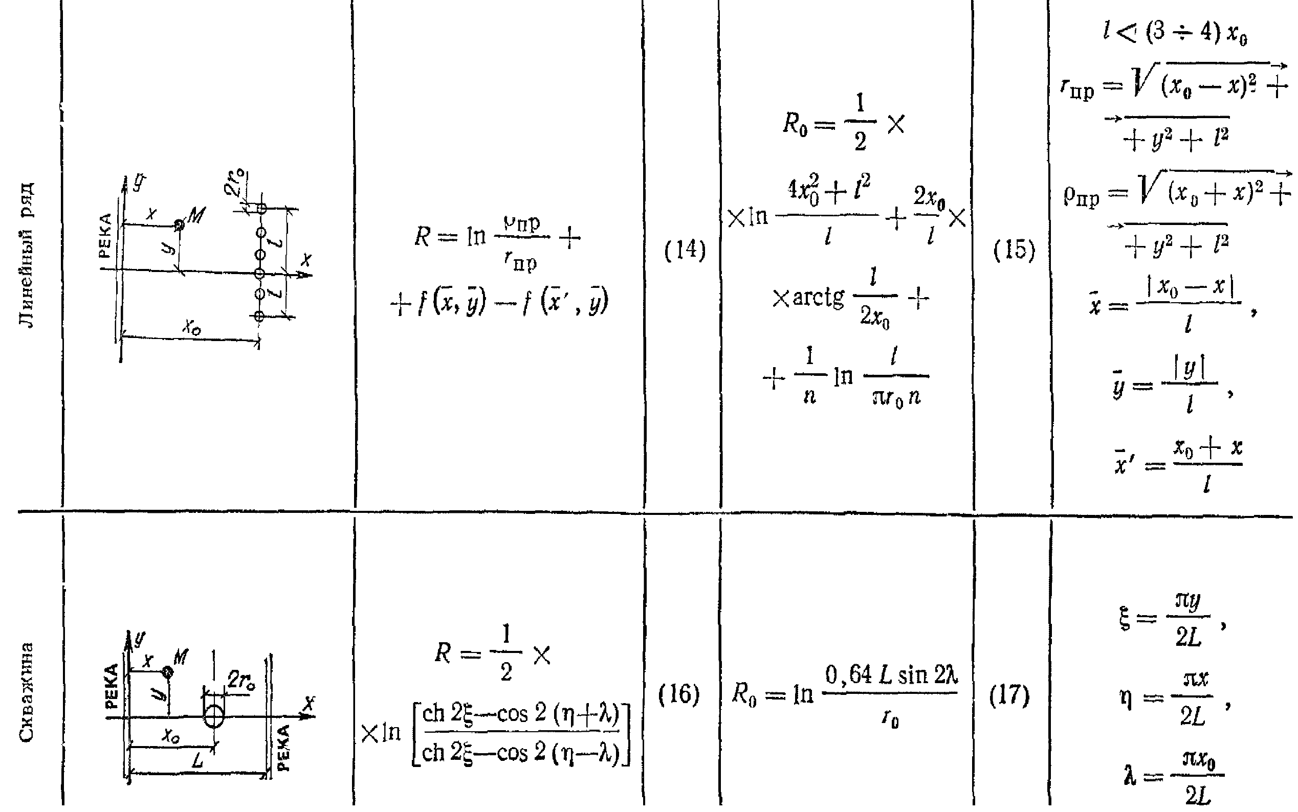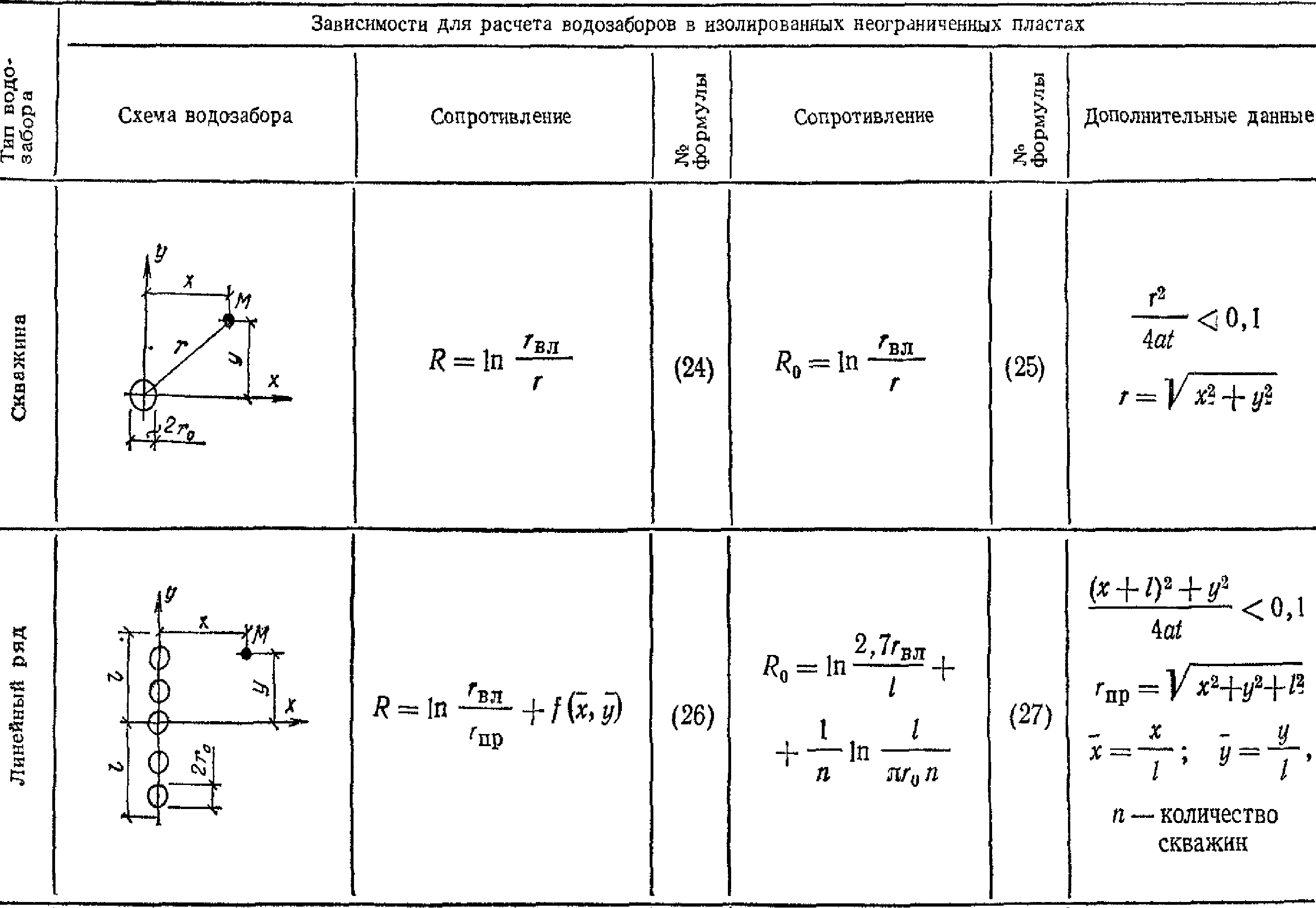Примечание. Над чертой - для гравийно-проволочных фильтров; под чертой - для сетчатых и блочных фильтров.