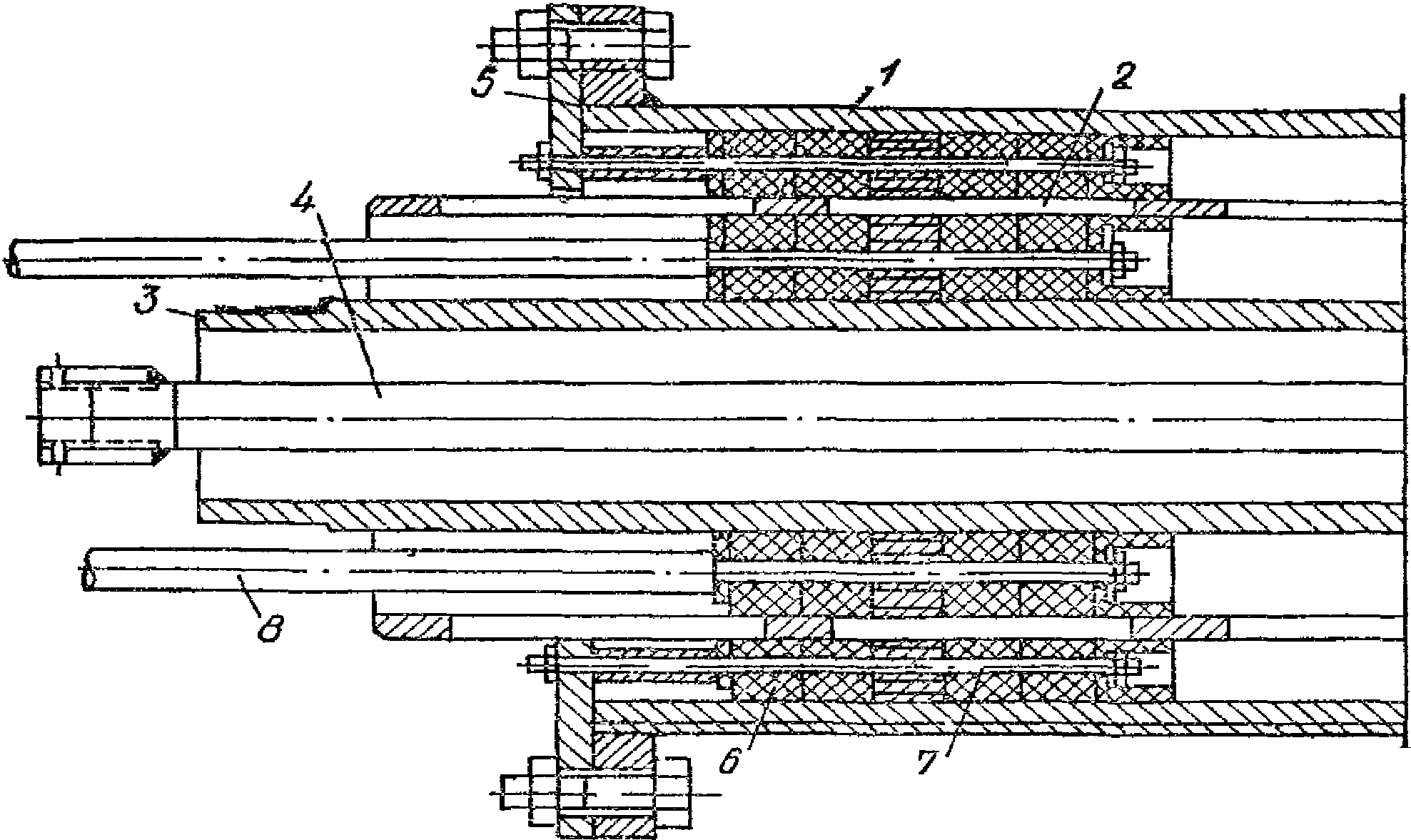 1 - обсадная колонна; 2 - нижний фланец; 3 - резиновая