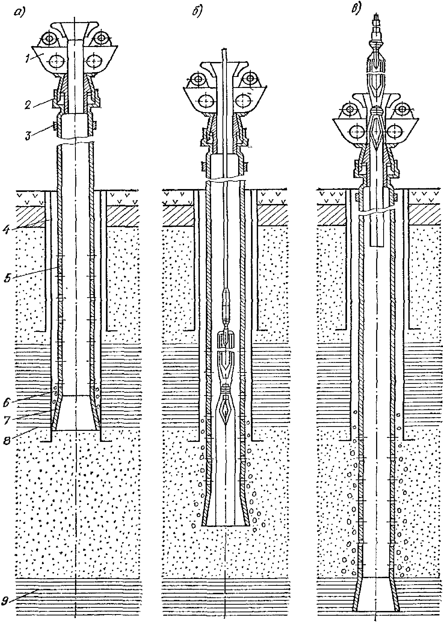 19.12. С целью интенсификации обработки и достижения высоких показателей восстановления производительности скважин целесообразно применять комбинированный виброреагентный метод, разработанный ВНИИГС и ВОДГЕО, при котором воздействие на кольматант реагентом сочетается с его гидродинамической обработкой вибрирующим рабочим органом, осуществляемой виброустановками ВУР, применяемыми для разглинизации скважин (см.