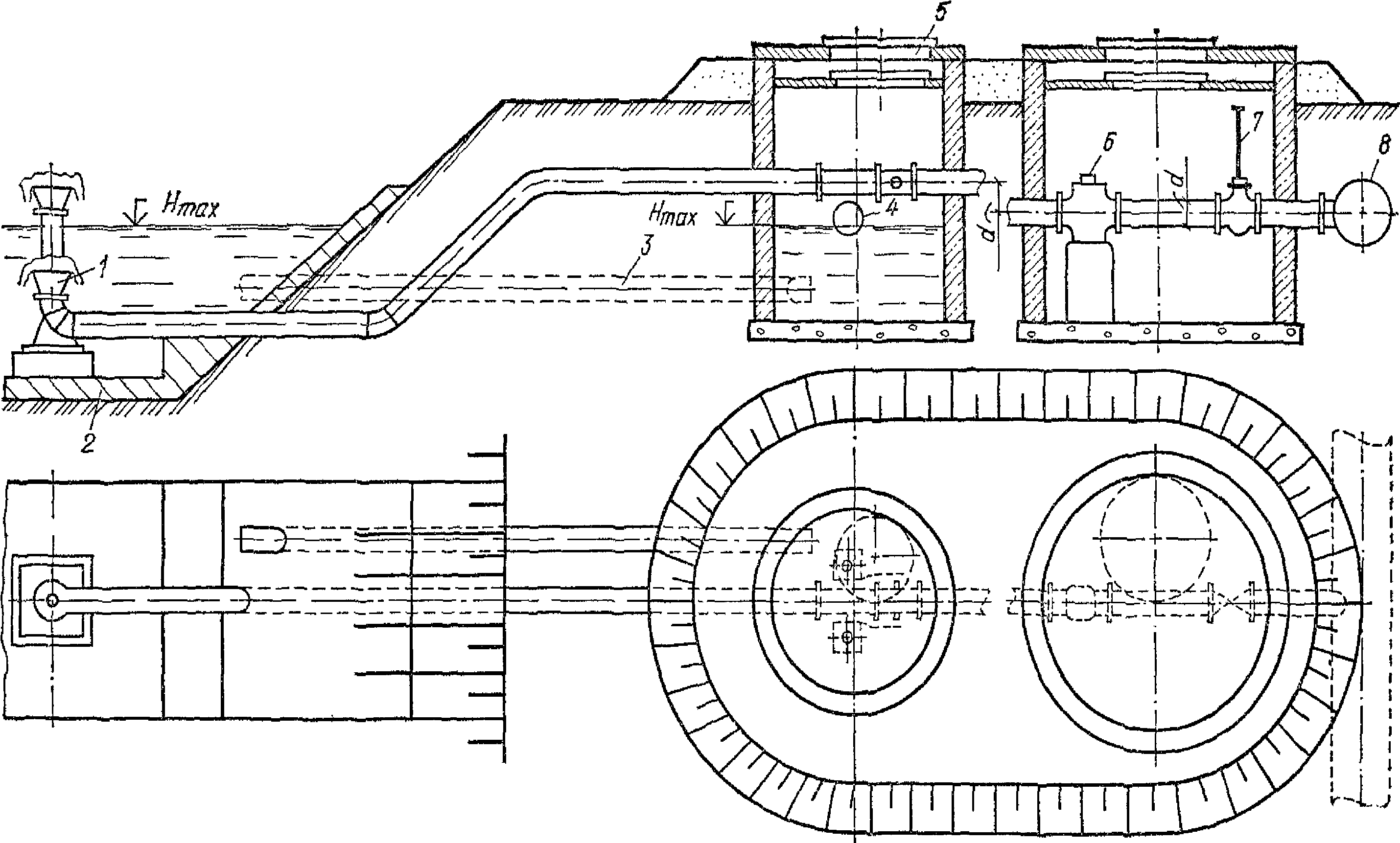 <*> В объем капитальных вложений входит строительная стоимость всех сооружений системы водопровода от сооружений на источнике до потребителя воды, а также стоимость сооружений энергоснабжения, связи, дорог.