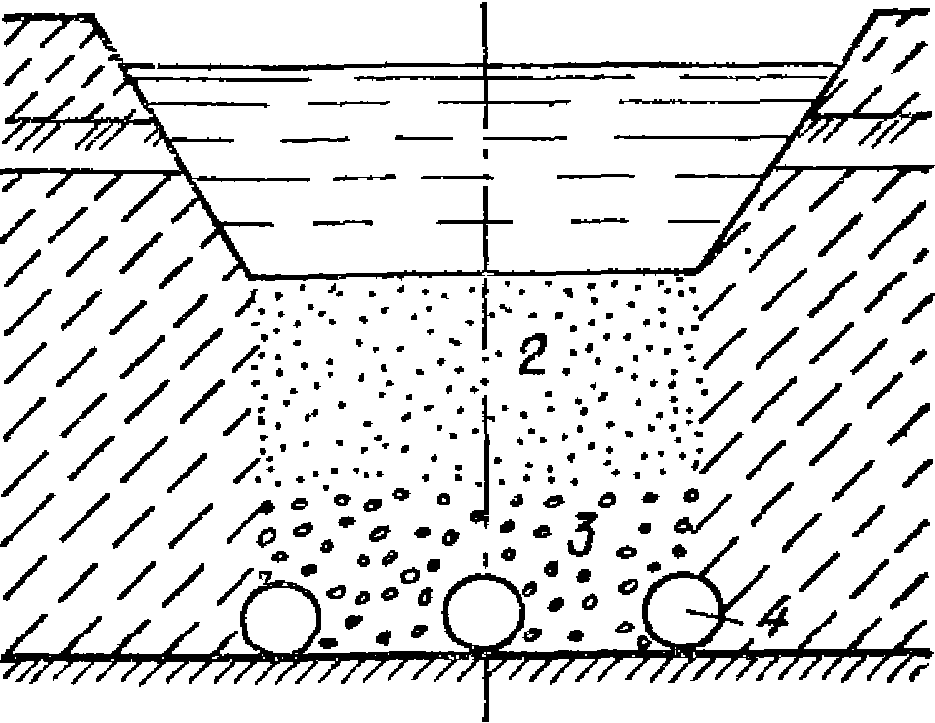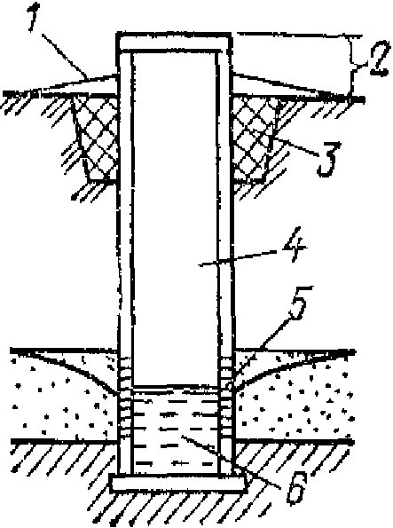 реагента; 1 - скважина; 2 - фильтр; 3 - опора; 4 - труба;