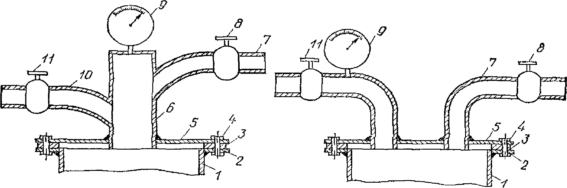 для заливки реагента; 8, 11 - вентили; 9 - манометр;