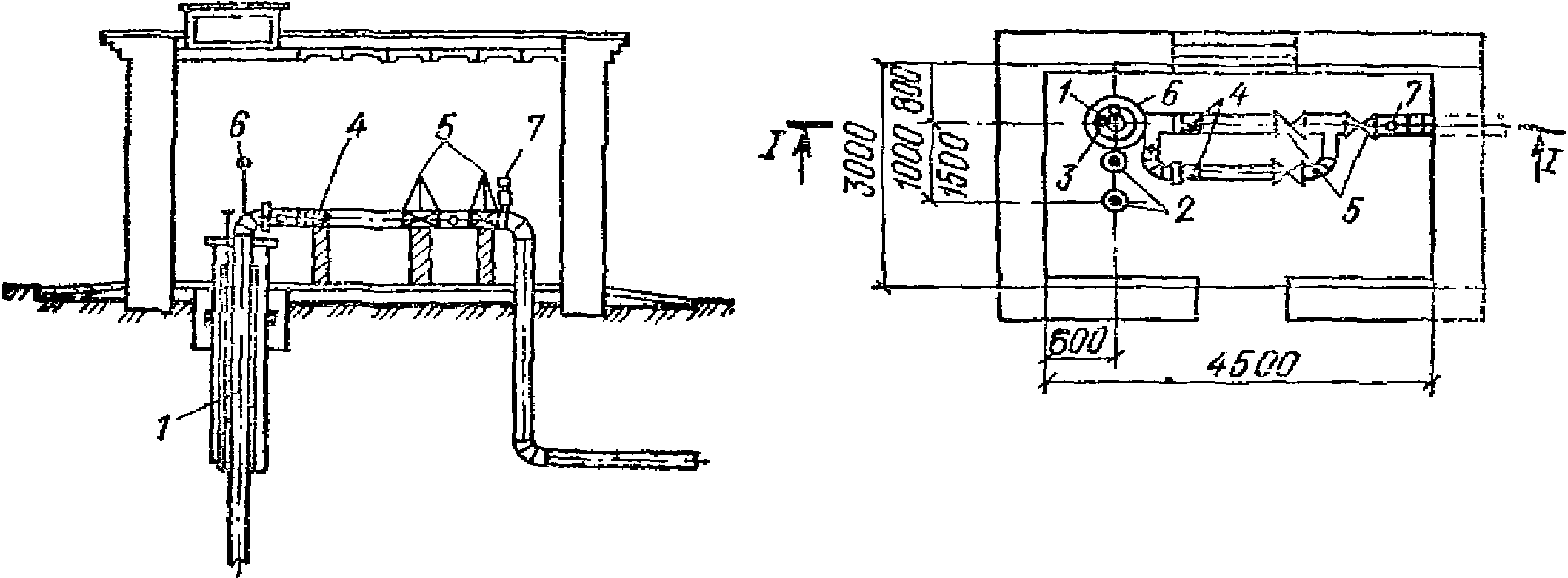 5 - верхний фланец; 6 - корпус оголовка; 7 - патрубок