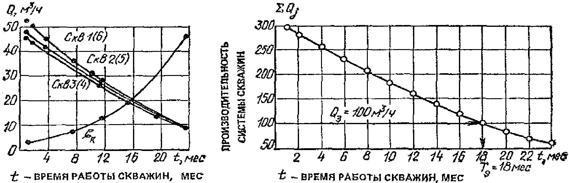 При оценке действия системы скважин необходимо принимать во внимание, что зачастую отсутствует период стабильной работы системы
