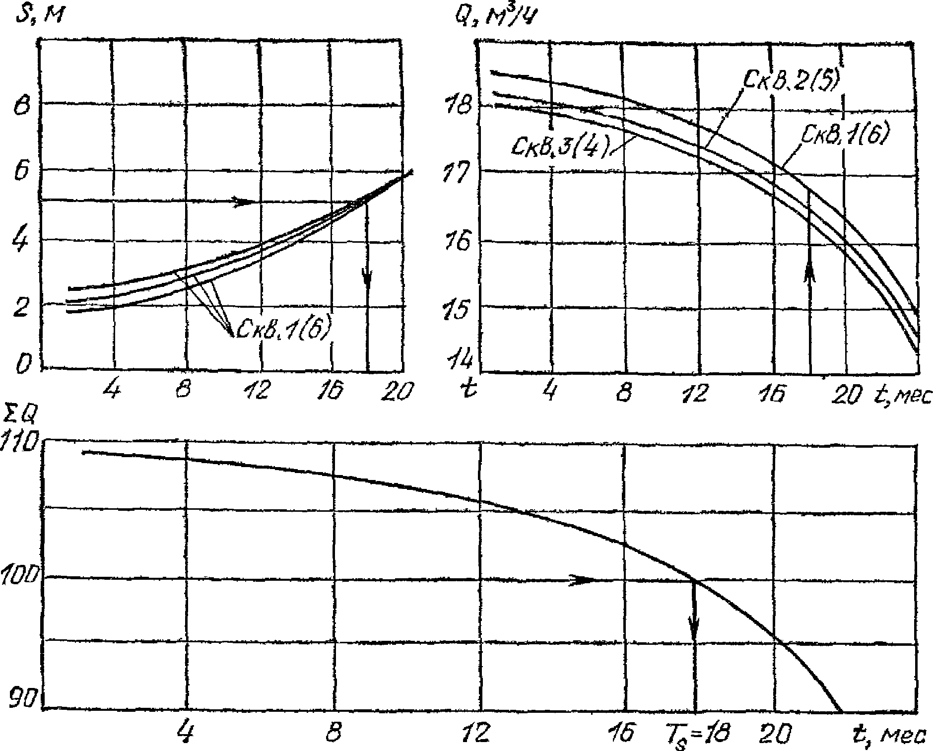 При оценке действия одиночной скважины, а также отдельных скважин в водозаборе или дренажной системе состояние скважины и необходимость ее регенерации определяются на основе построения графиков зависимости