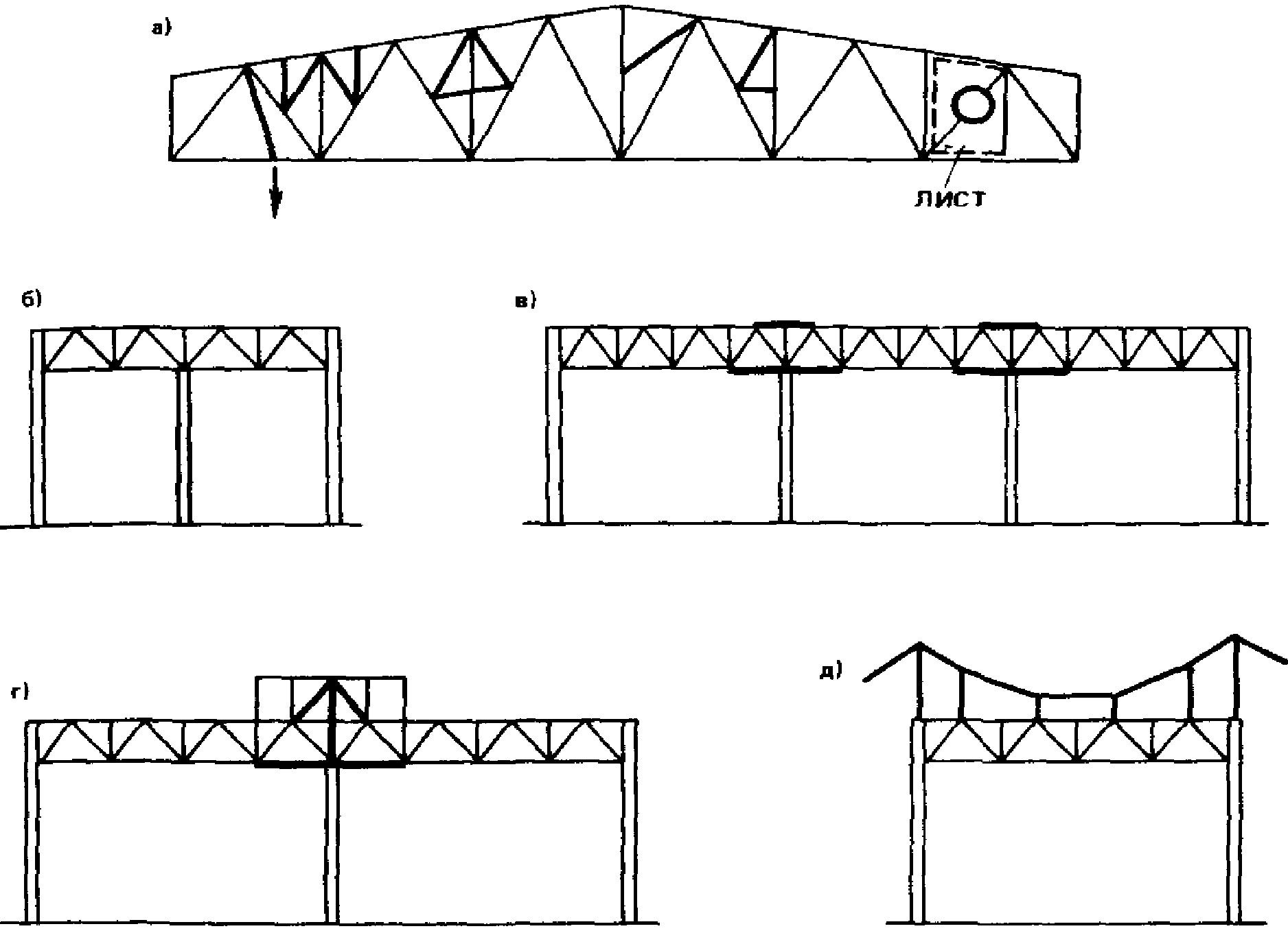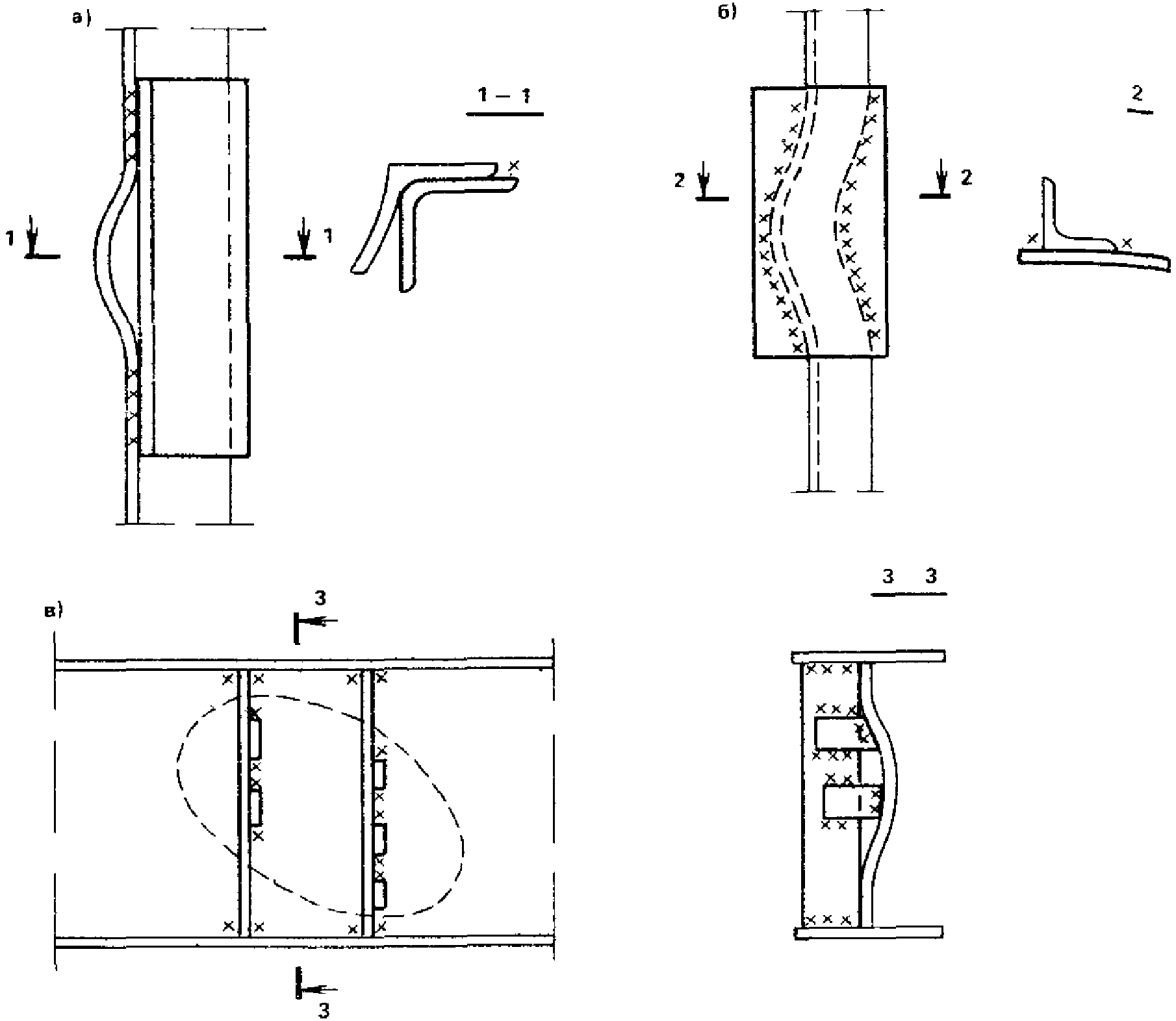 2.9. Повреждения стальных конструкций, появляющиеся и развивающиеся во время их эксплуатации, являются, как правило, следствием грубых нарушений правил технической эксплуатации или ошибок, допущенных при проектировании. Причинами их могут быть также дефекты изготовления, транспортирования и монтажа. Характерными повреждениями, влияющими на работоспособность и эксплуатационную пригодность конструкции, считаются: