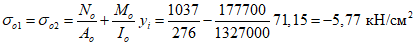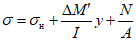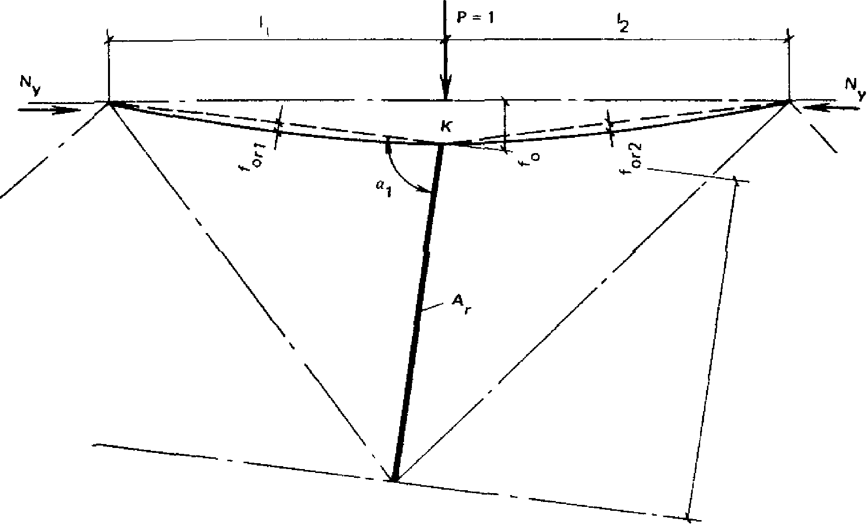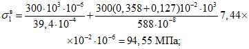 - продольная сила, действующая на неусиленное сечение в момент измерения стрелки погиби;