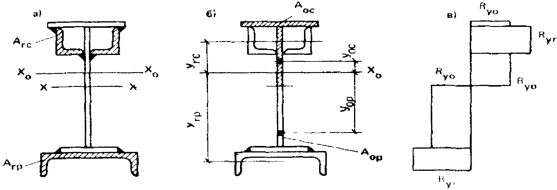 - расчетное сопротивление усиливаемого (существующего) элемента растяжению, сжатию, изгибу по временному сопротивлению стали;