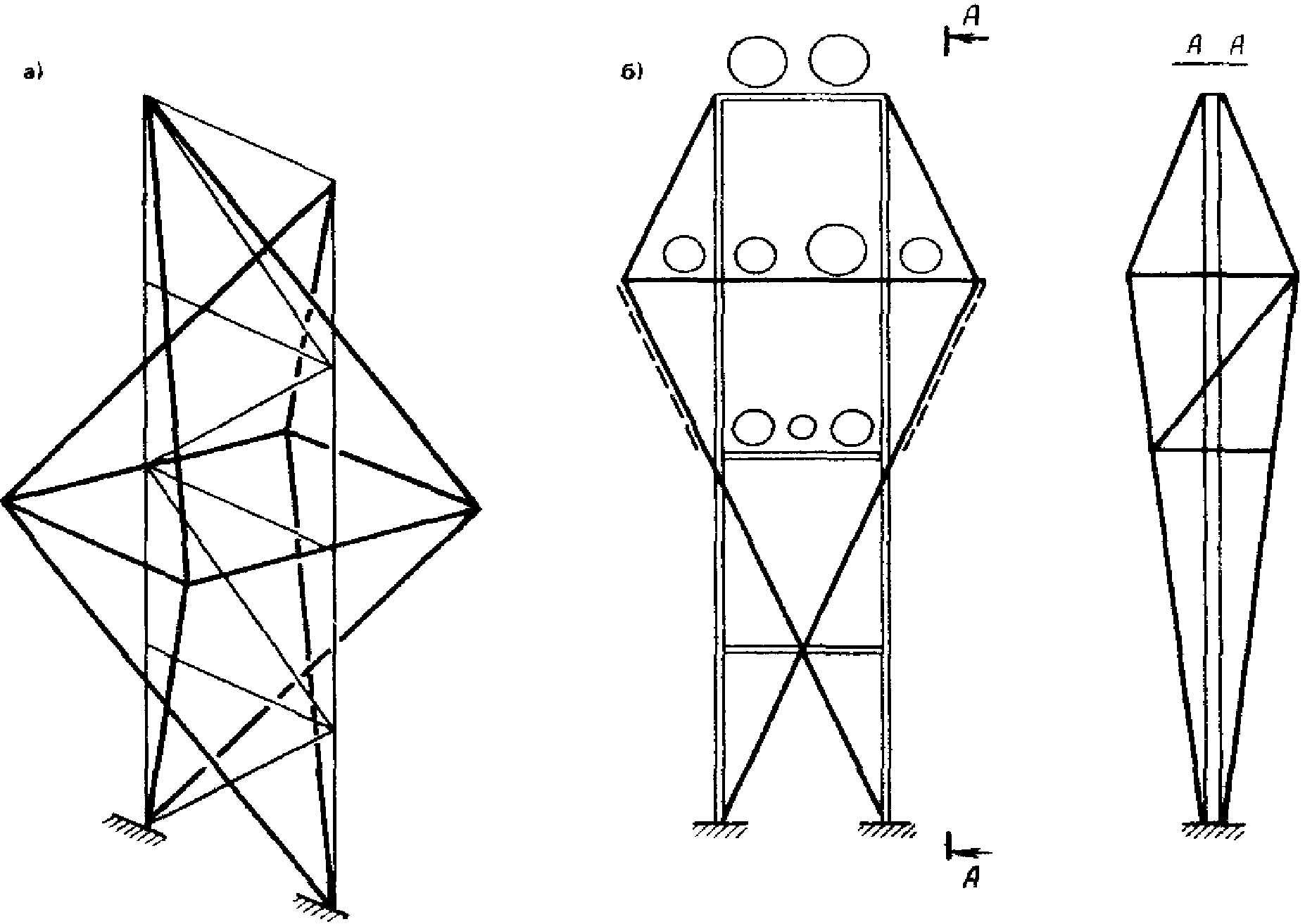 выполнение расчетов по нескольким вариантам расчетных схем для оценки возможного отрицательного влияния обычно не учитываемых факторов (податливости или несмещаемости фундаментов, возможного проявления эффектов неразрезности, участия в работе каркаса ограждающих конструкций и оборудования и т.п.);