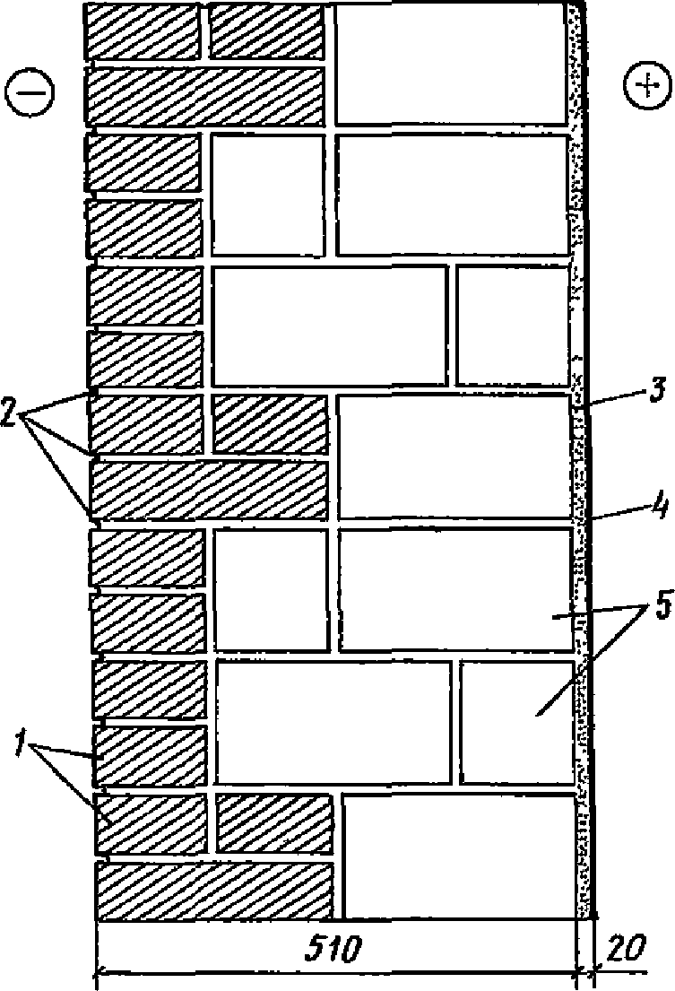 1.18. В зданиях с особыми условиями и мокрым режимом для северных районов следует предусматривать специальную конструкцию наружных стен (например, с защитным экраном с внутренней стороны и вентилируемой прослойкой). В тех случаях когда при этих условиях применяется кирпичная стена, кладку следует предусматривать на цементно-песчаном растворе 1:2 с заполнением швов под залив с перевязкой в каждом ряду и расшивкой швов с наружной стороны.