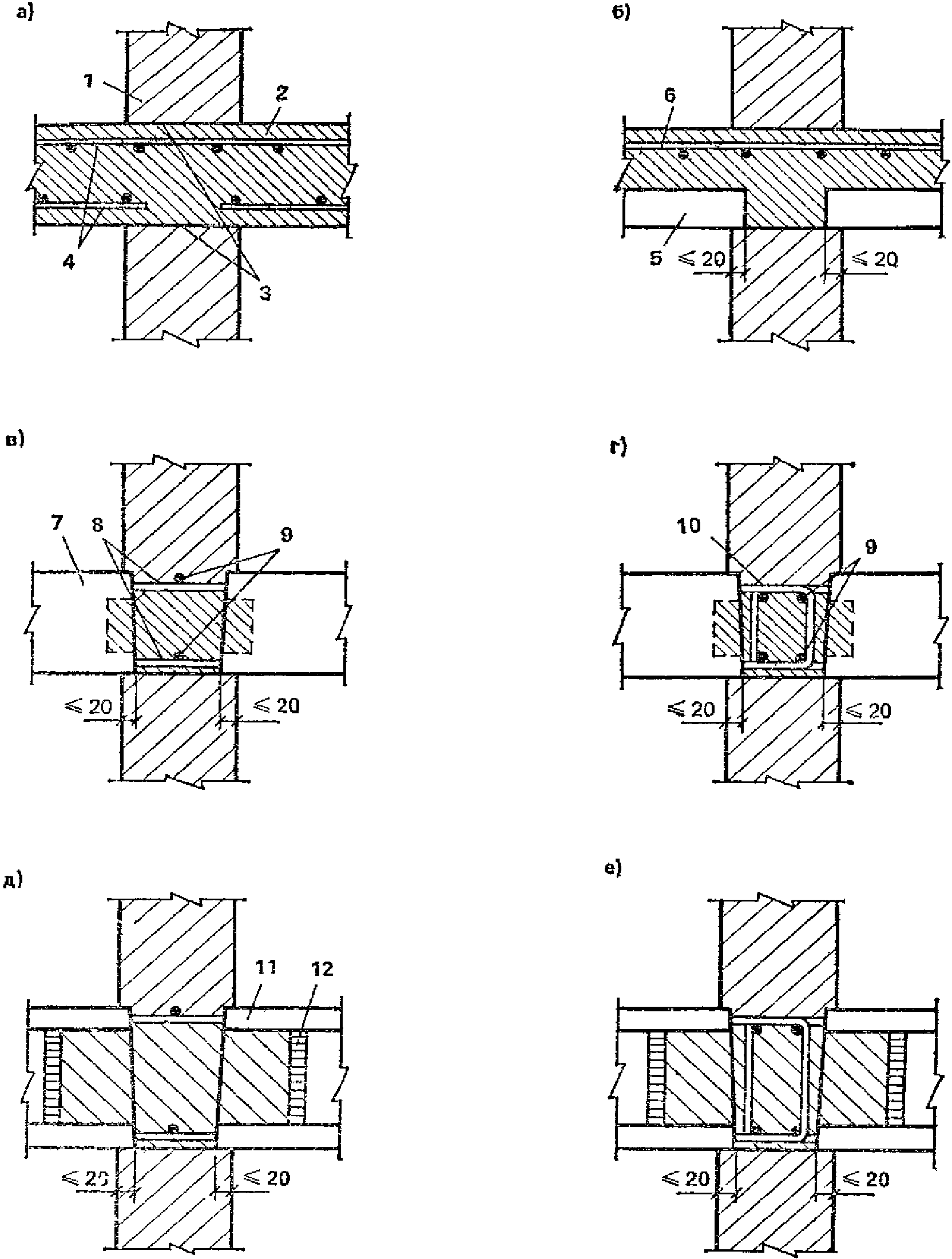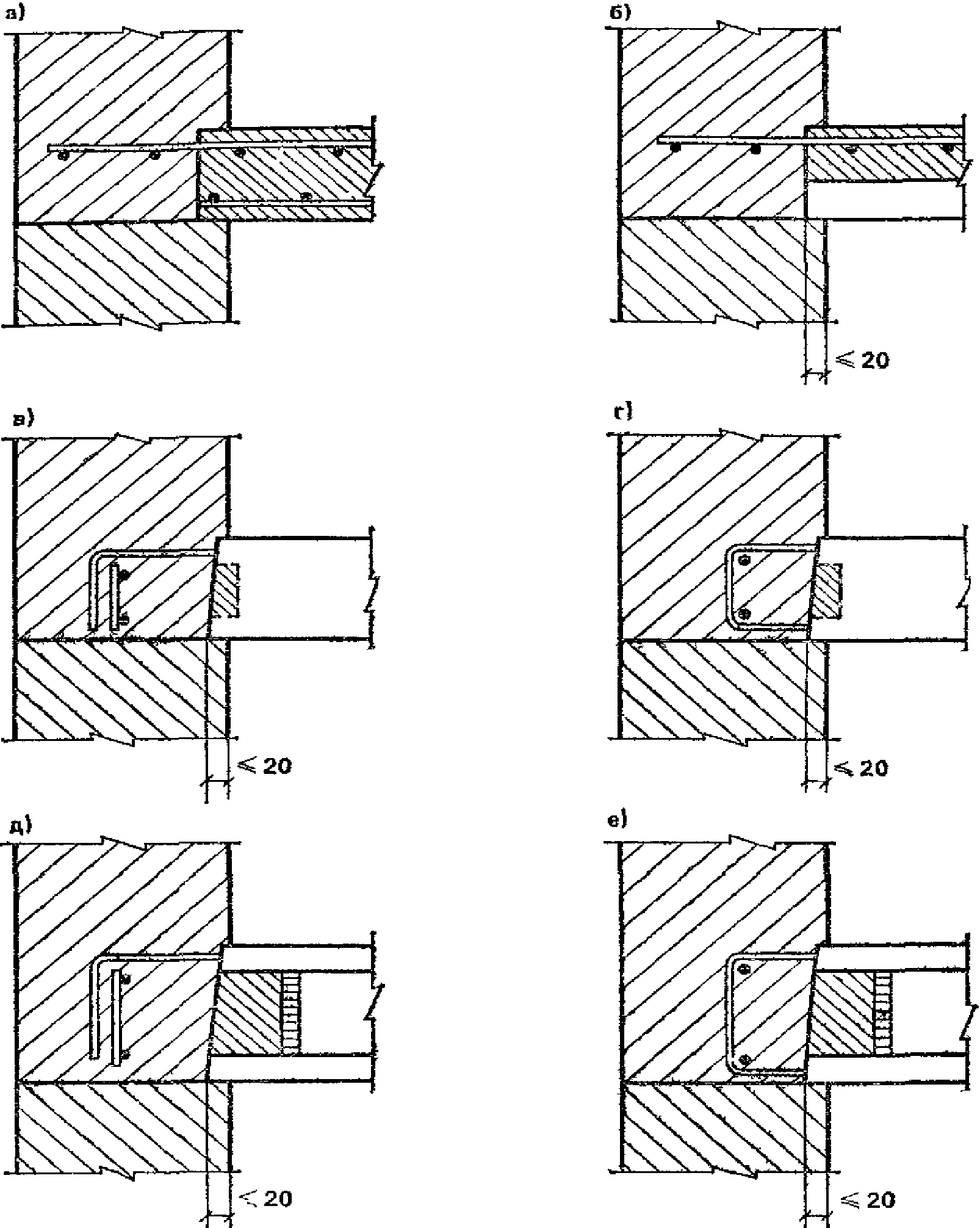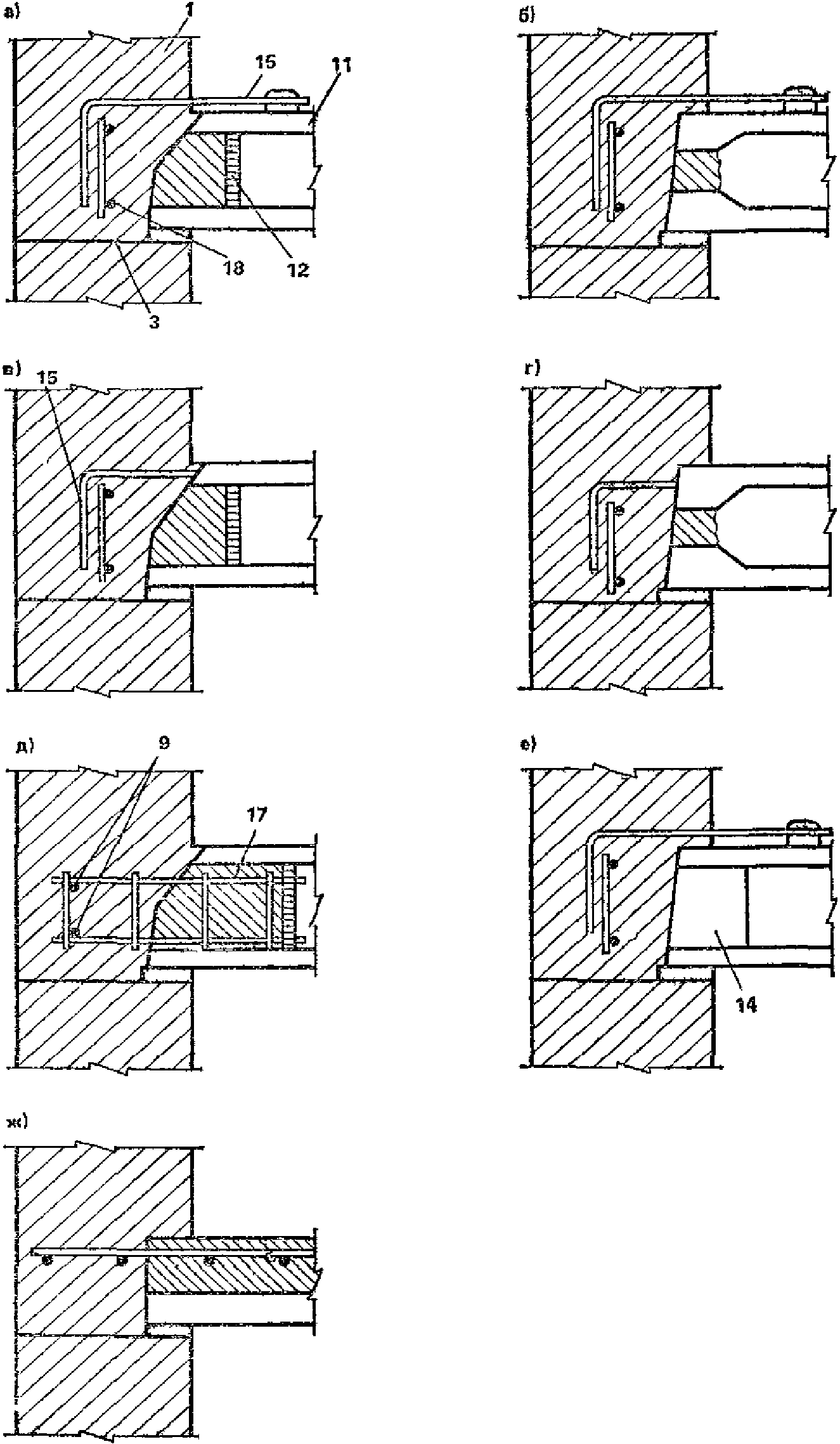 (рис. 2, е) или из сборных панелей, крупных и мелких блоков кирпичной кладки;