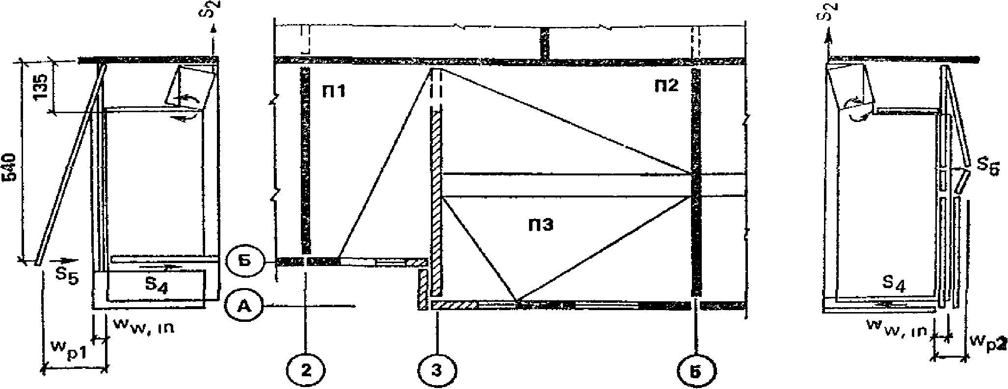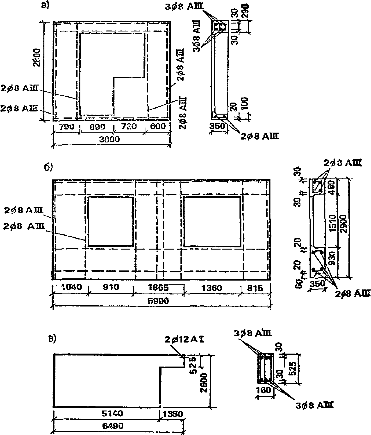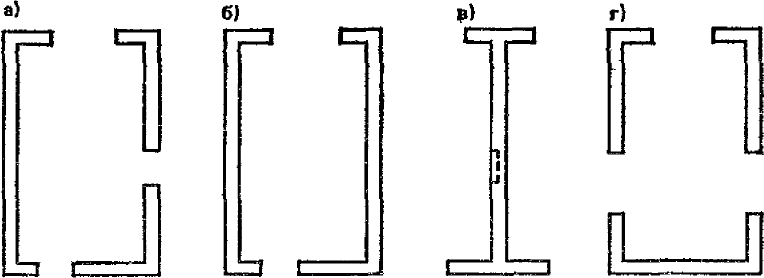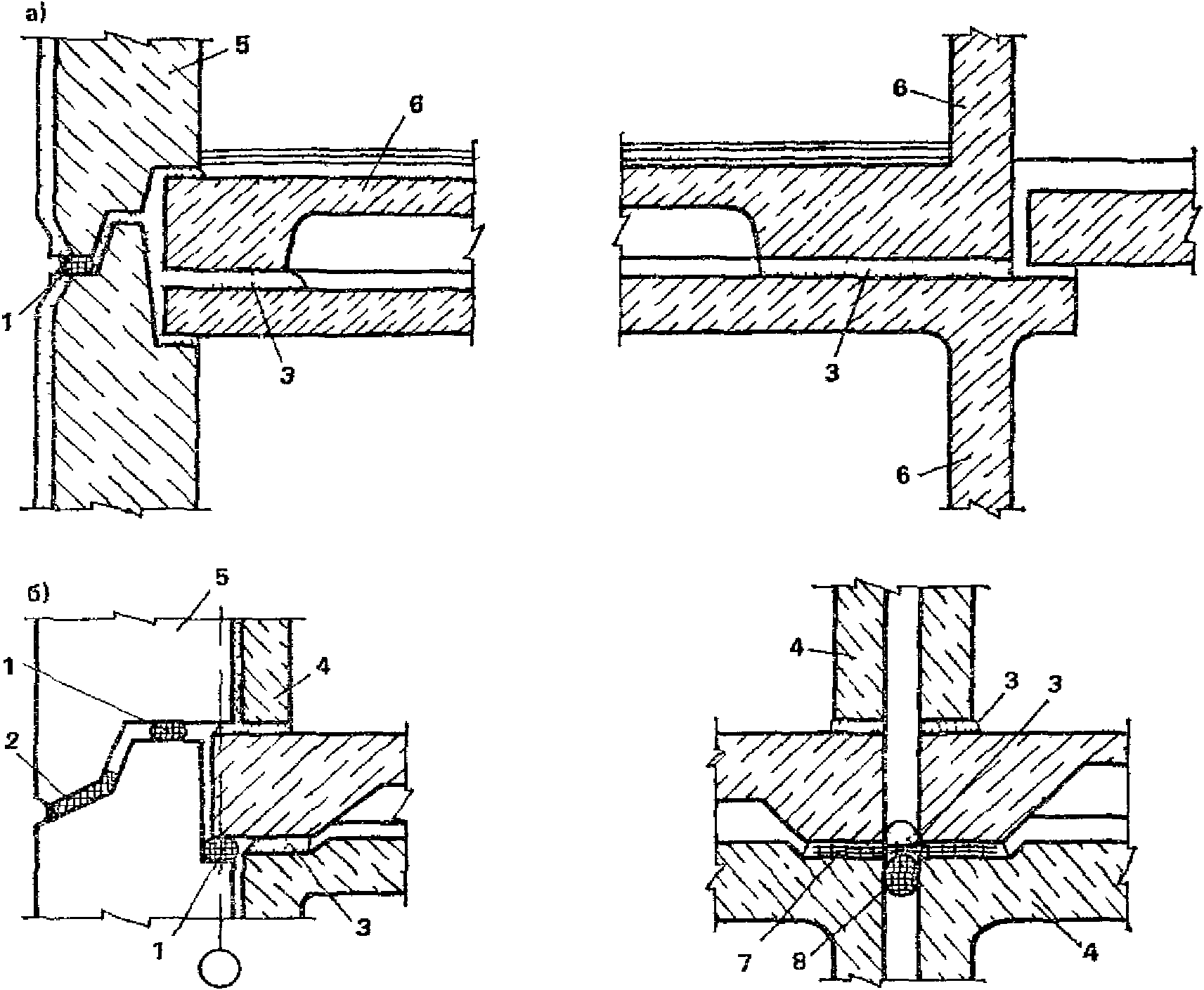 (рис. 2, е) или из сборных панелей, крупных и мелких блоков кирпичной кладки;
