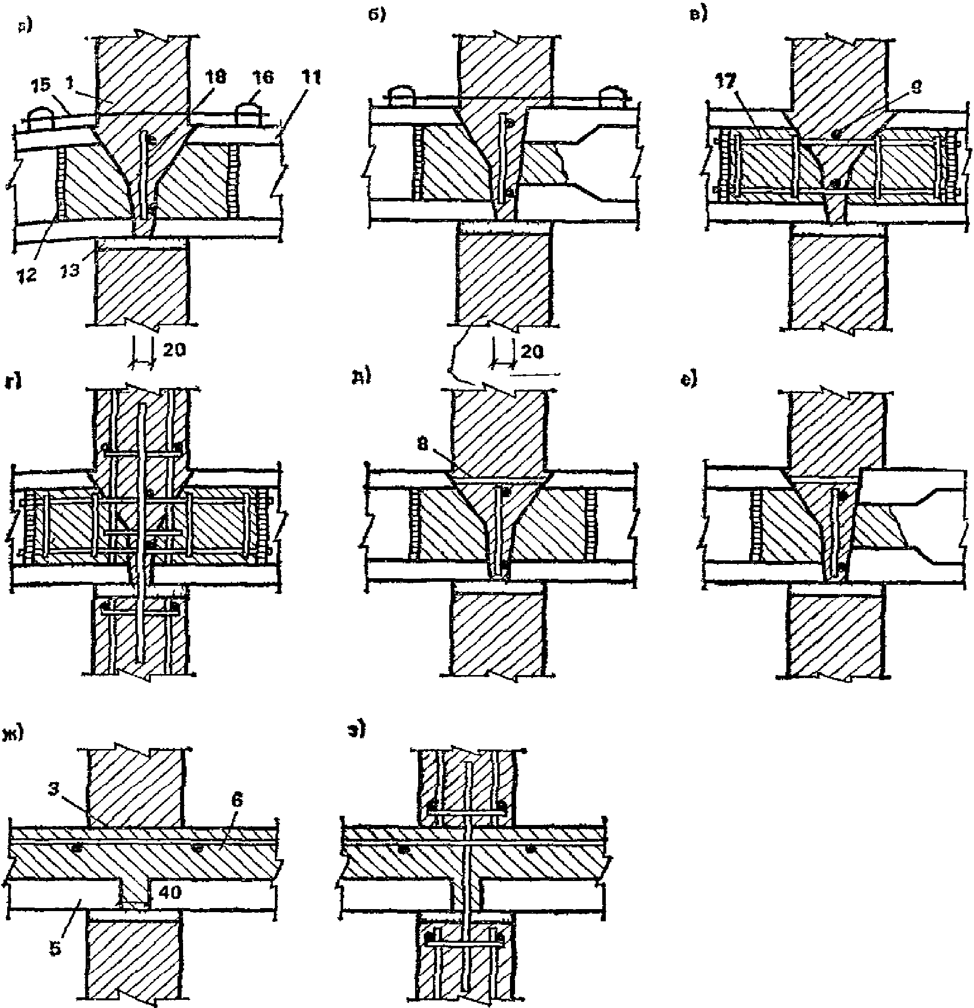 (рис. 2, и) способом поярусного бетонирования, и сборными или монолитными перекрытиями;