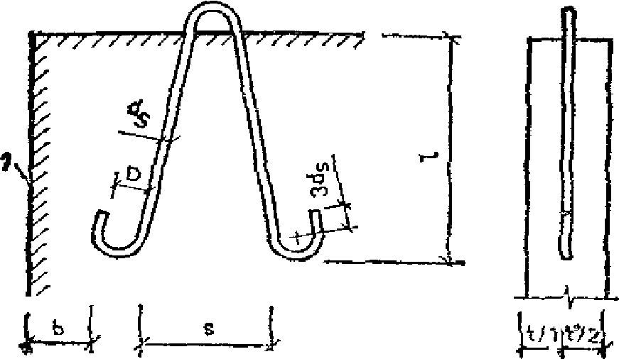 - коэффициент, равный: для стержня с крюком - 1, для строповочной петли при s = t / 3 - 1,7 при s >= 2t - 2; для промежуточных значений s величина