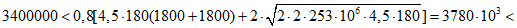 примера 1 при нормативной кубиковой прочности бетона при первом подъеме 10 МПа и крупности заполнителя 20 мм в случае установки двух стержней с крюками на конце
