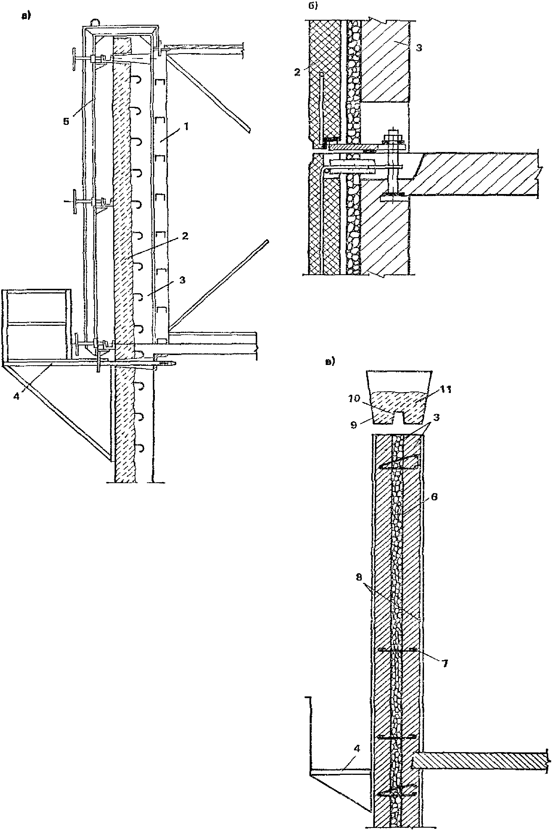 (рис. 2, д). Наружные стены в этом случае выполняются монолитными в крупнощитовой и мелкощитовой опалубках после возведения внутренних стен и перекрытий