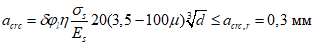 - расчетное значение сопротивления бетона при осевом растяжении; значения остальных величин, входящих в