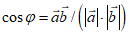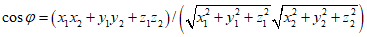 определяют, пользуясь координатным методом в пространстве и свойством скалярного произведения двух векторов: