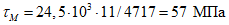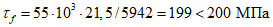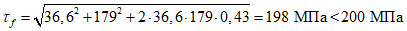 = 2300 x 10/(2,6 x 1 x 47 x 0,95) = 198 МПа.
