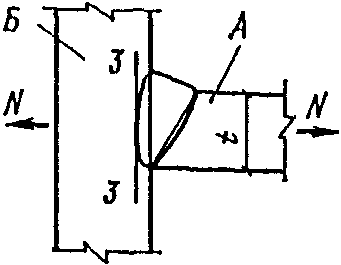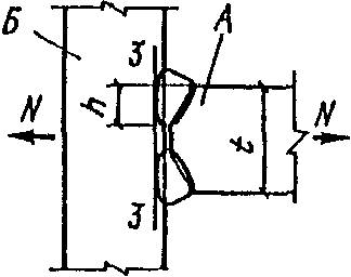 Элемент А длиной l = 200 мм, на который действует сила N = 1200 кН, прикрепляется швом с односторонней разделкой кромки к элементу Б (