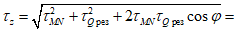 Результирующее напряжение от действия поперечной силы в плоскости x0y: