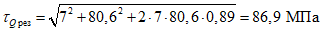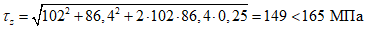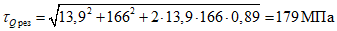 2300 x 10/2,8 x 1 x 47 x 0,95 = 184 МПа.