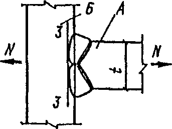 = 30 мм и длиной l = 500 мм, на которой действует сила N = 2300 кН, прикрепляется угловыми швами с разделкой кромок (