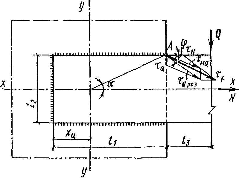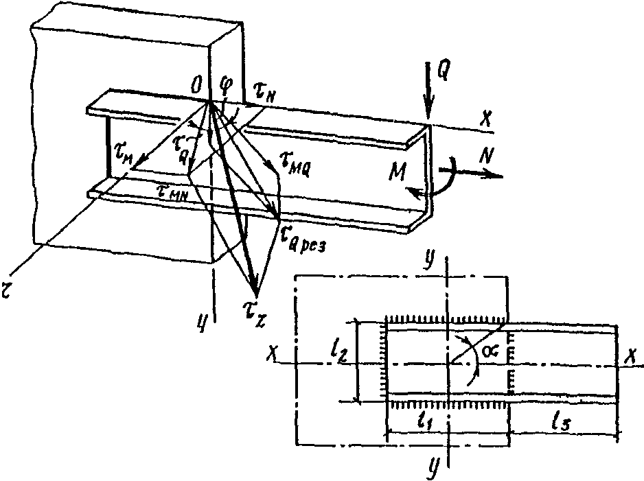 является суммой векторов напряжения от силы Q, перенесенной в центр тяжести периметра швов (